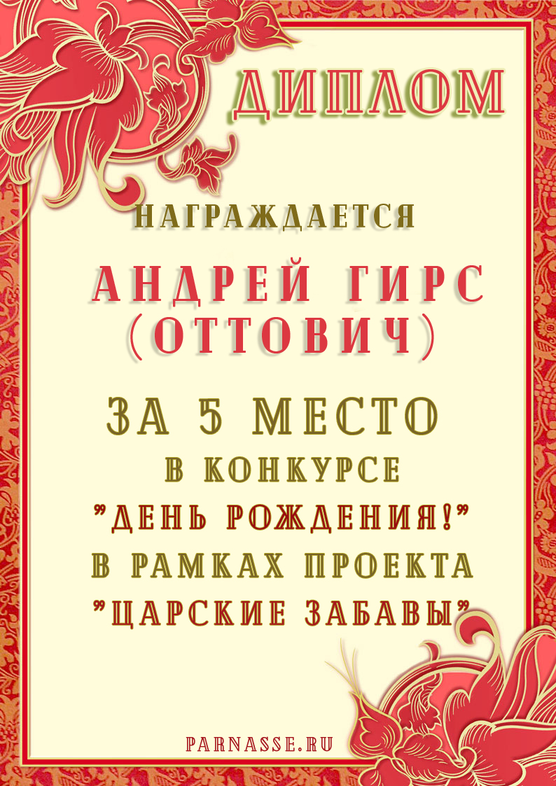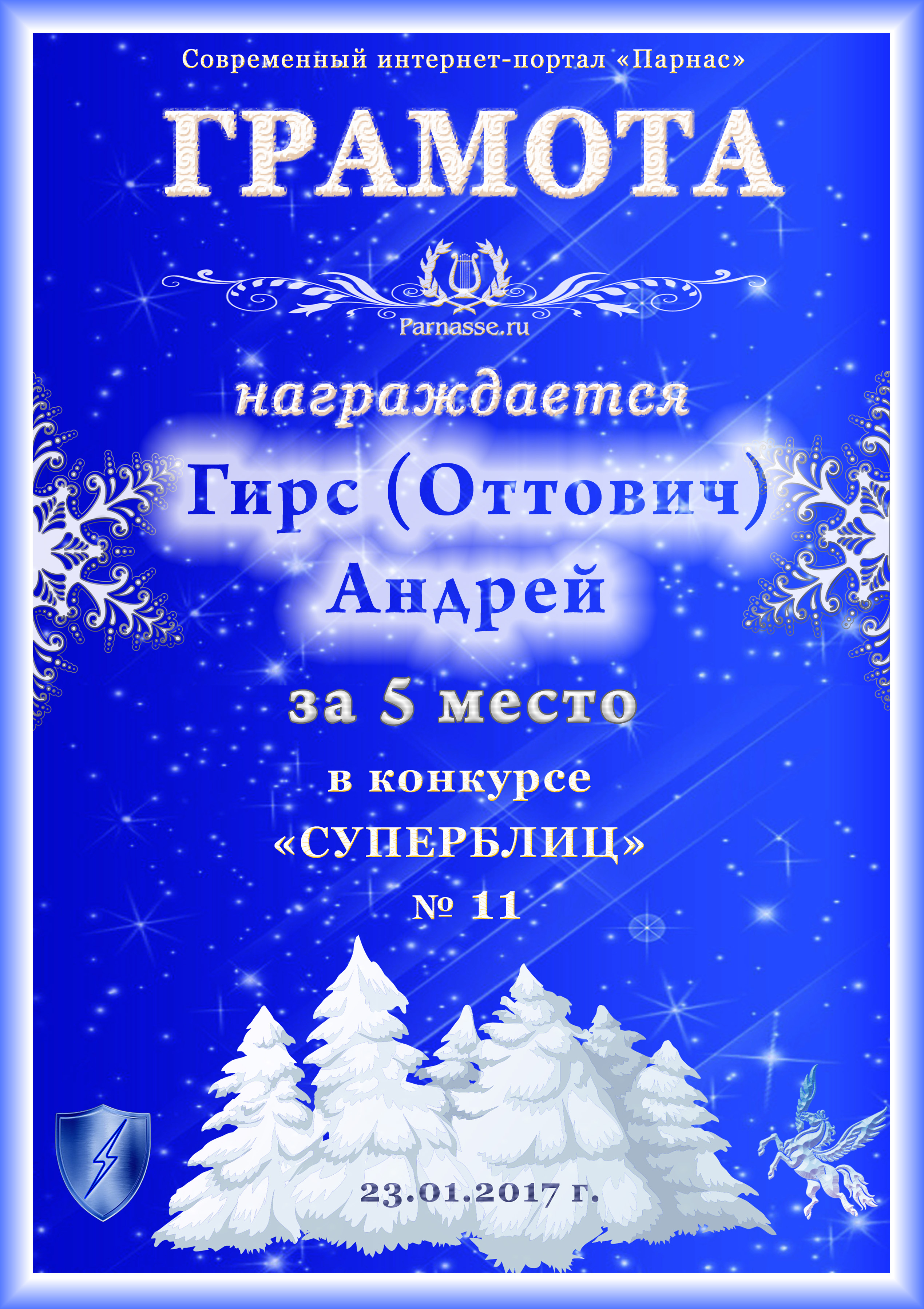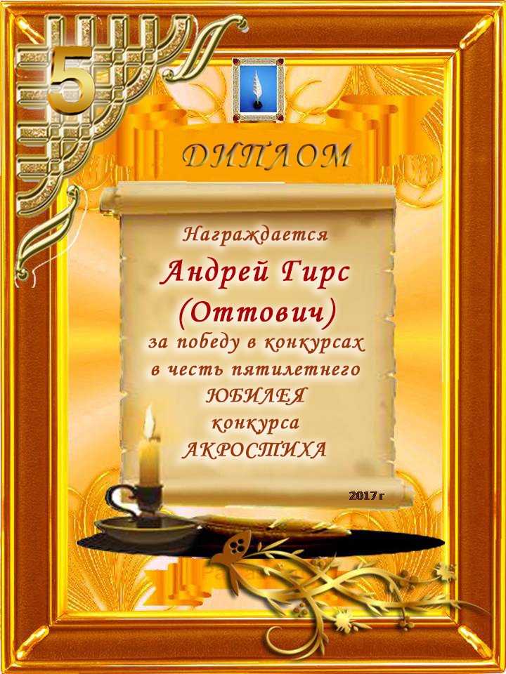 Диплом победителю в конкурсах Акростиха в связи с пятилетием конкурса Акростиха!