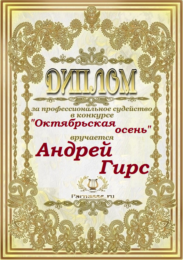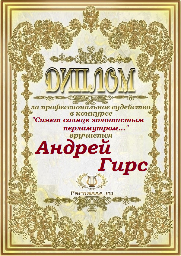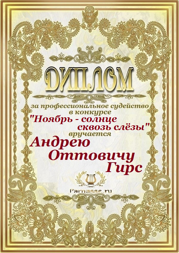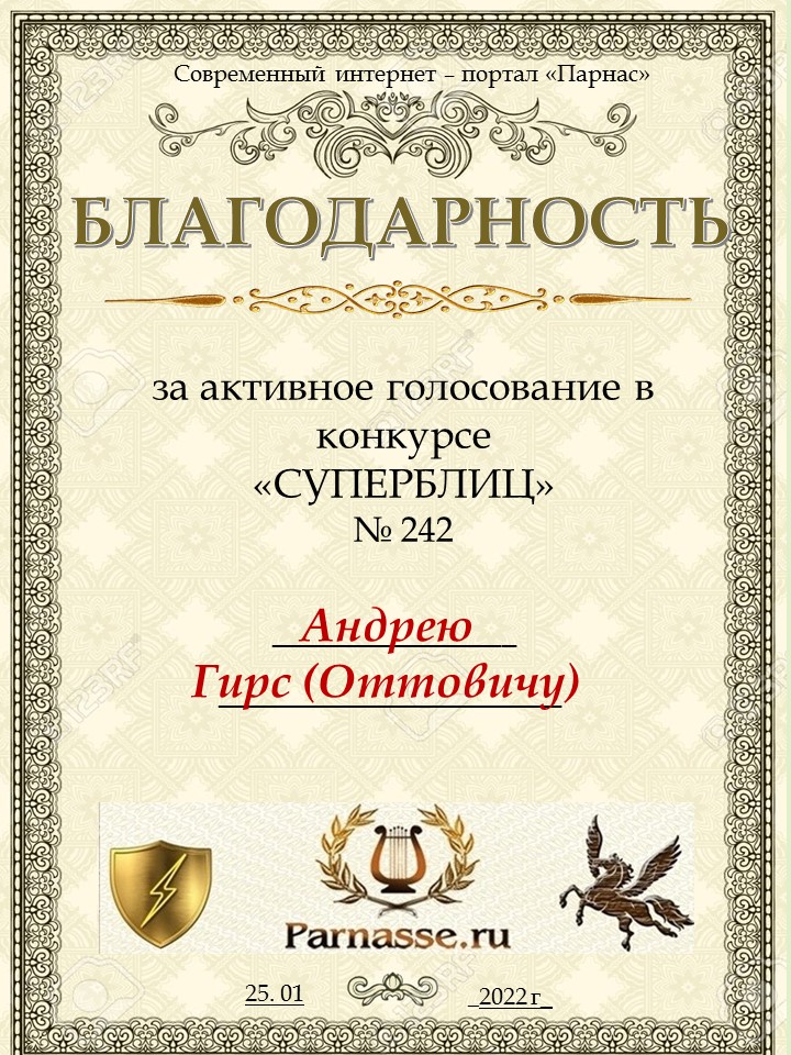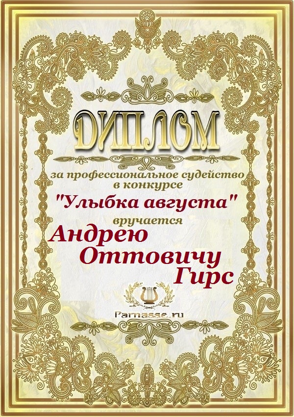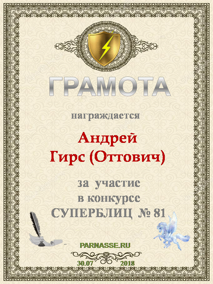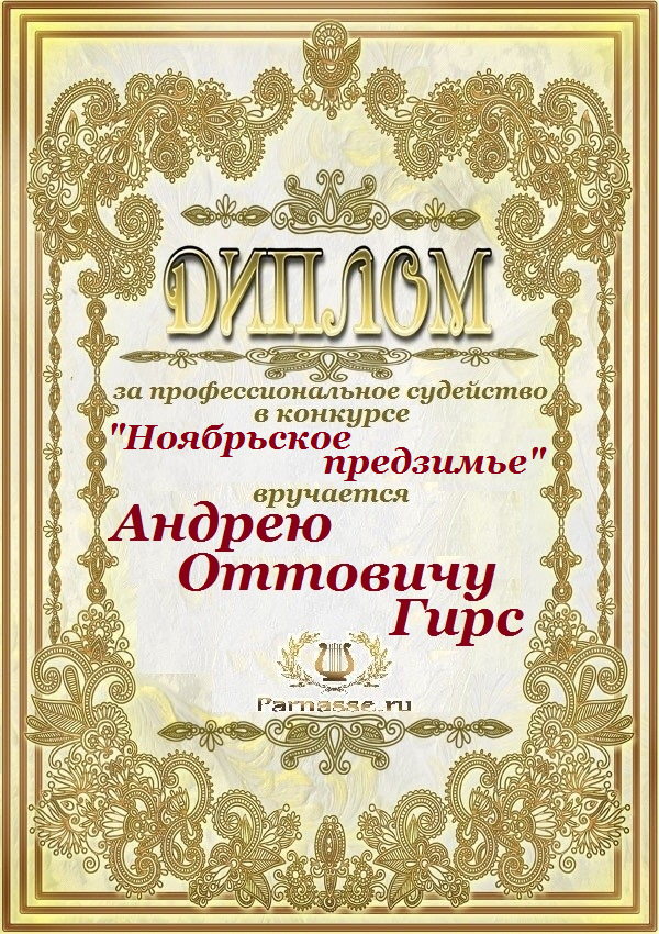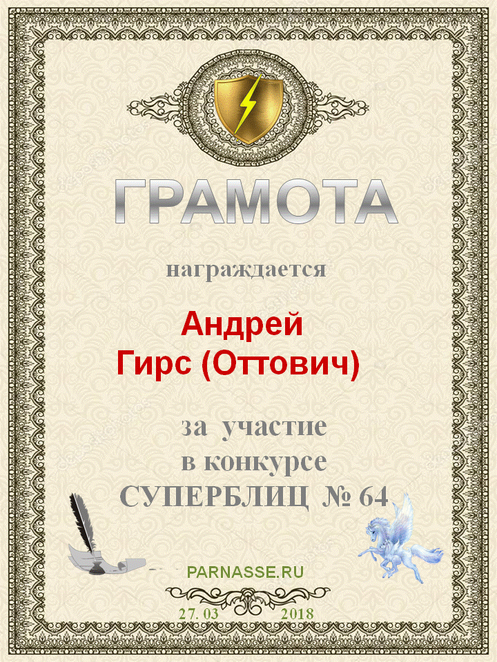Диплом за 1 место в 106 конкурсе АКРОСТИХА (Альтернатива)! ПОЗДРАВЛЯЮ!