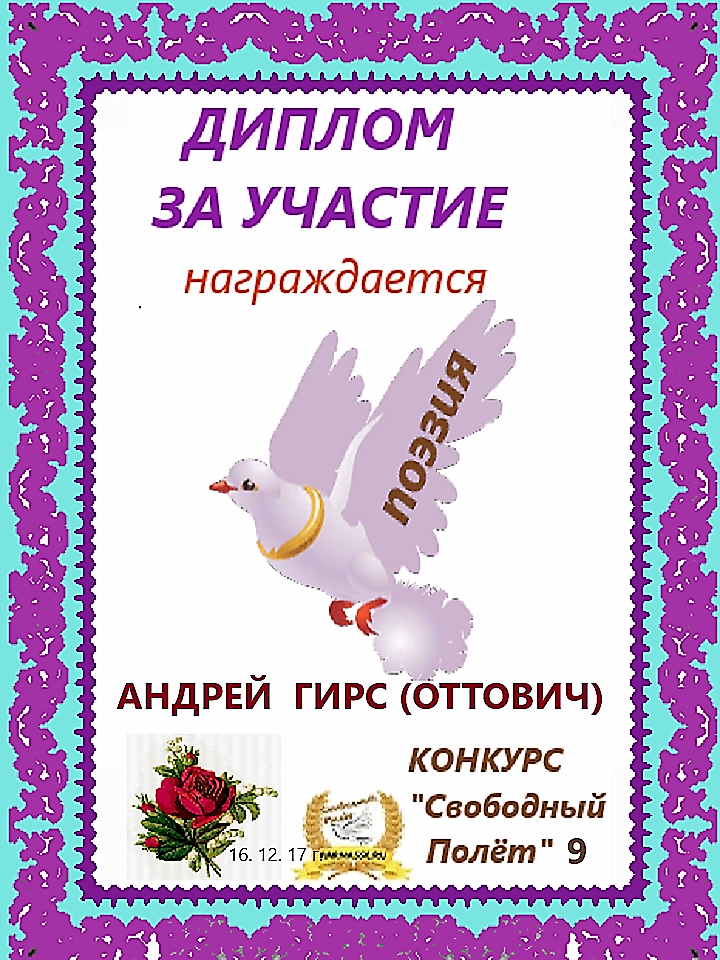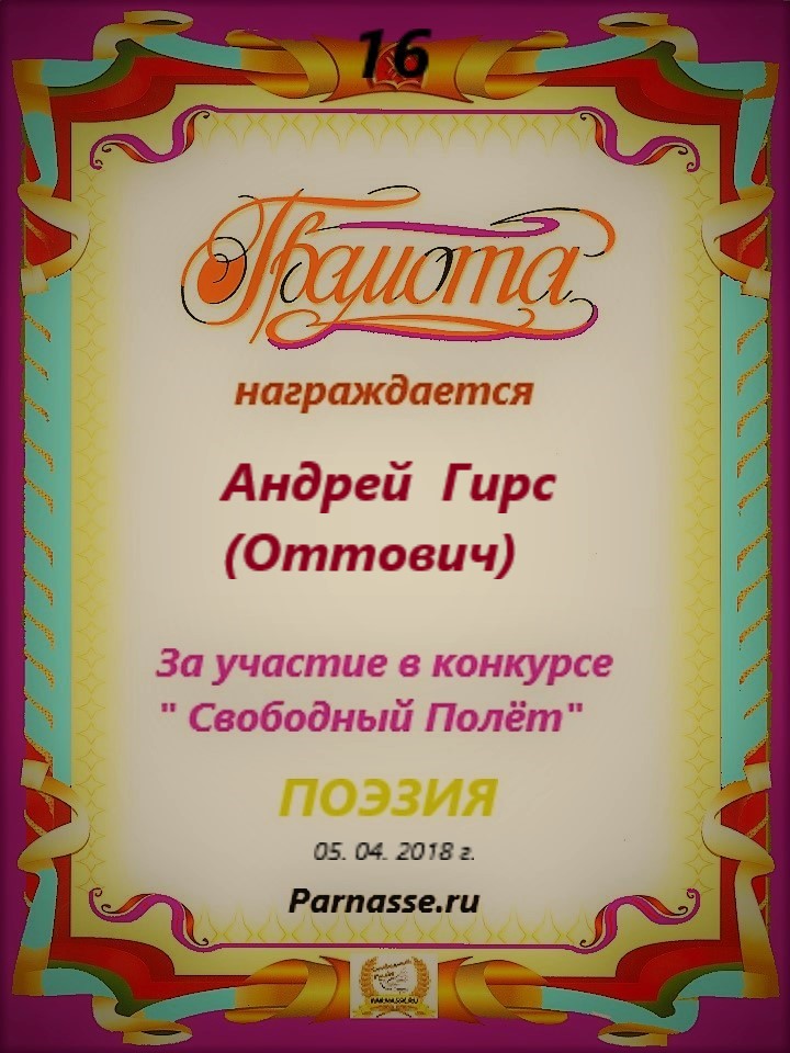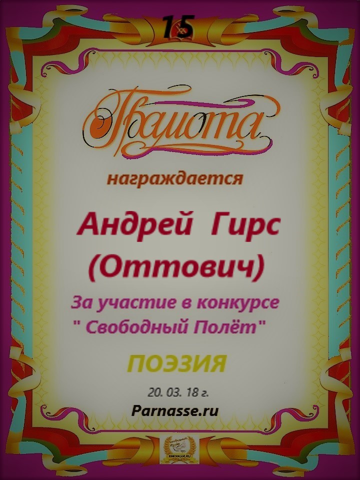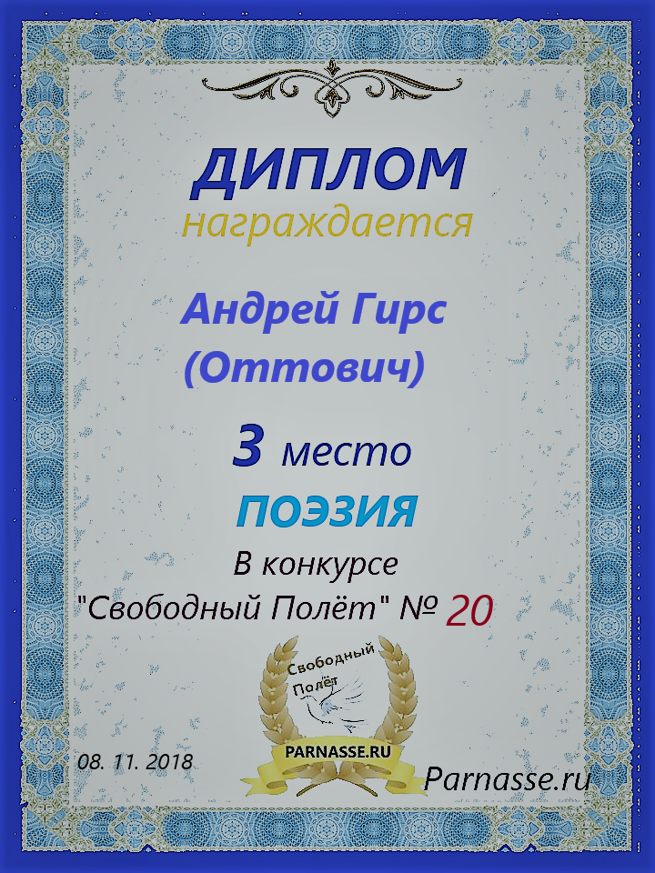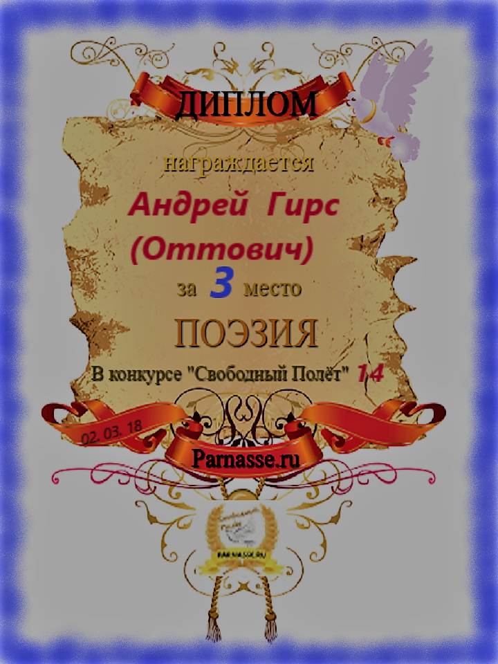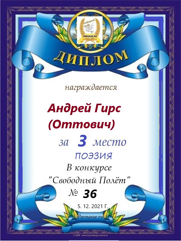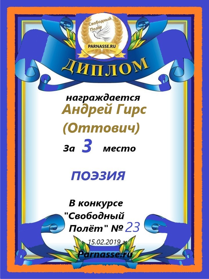 за 3 место в конкурсе "Свободный Полёт" № 36 ПОЭЗИЯ
