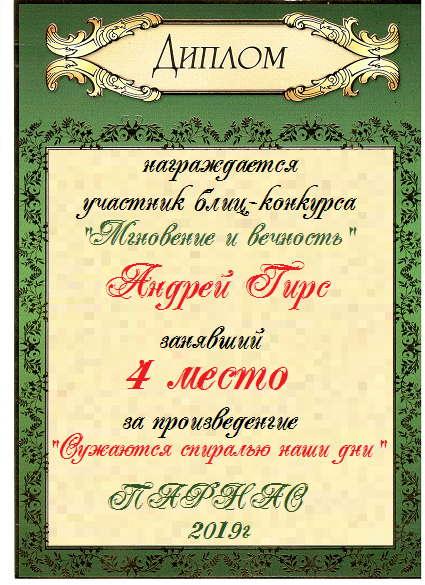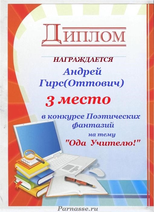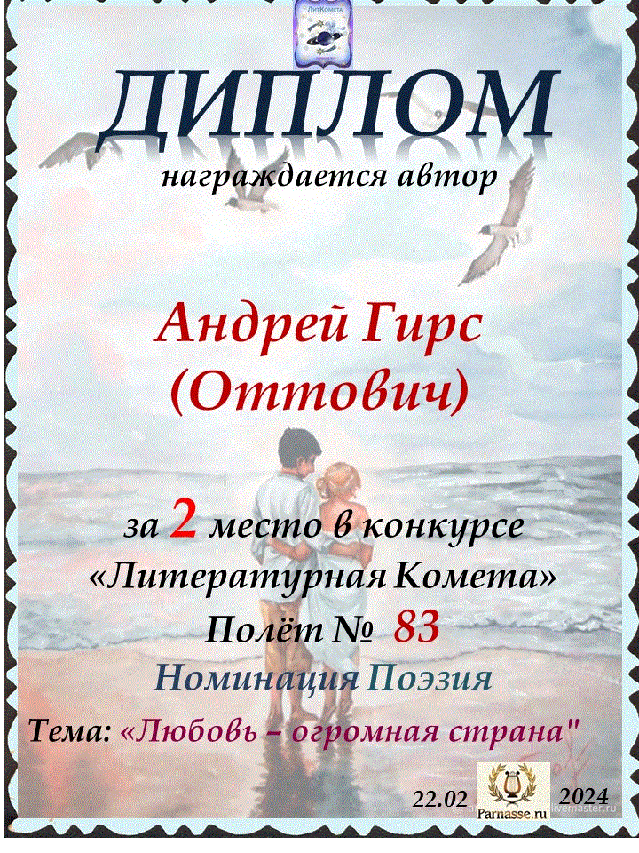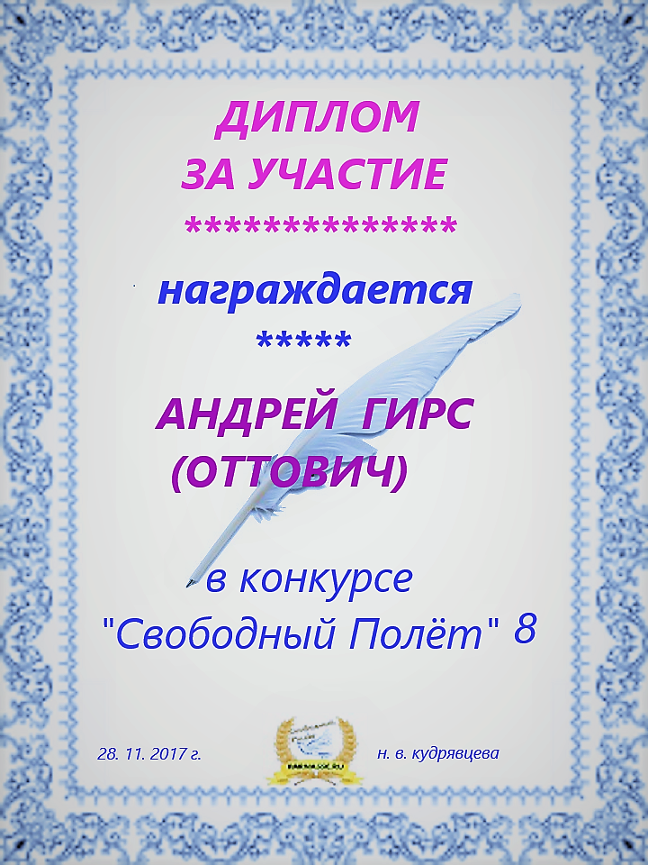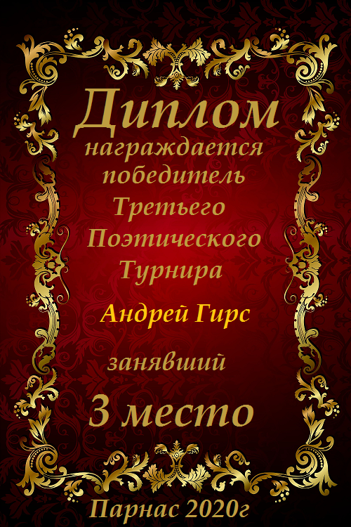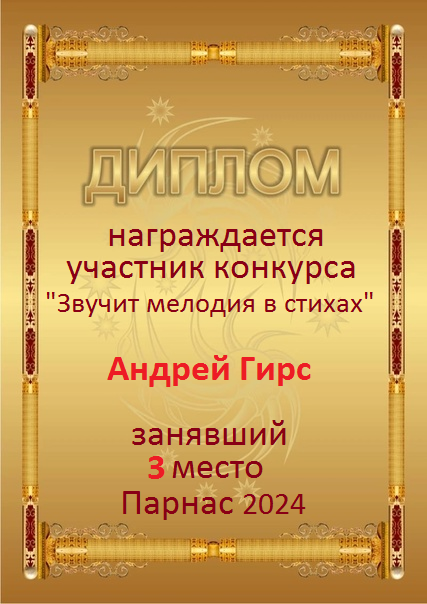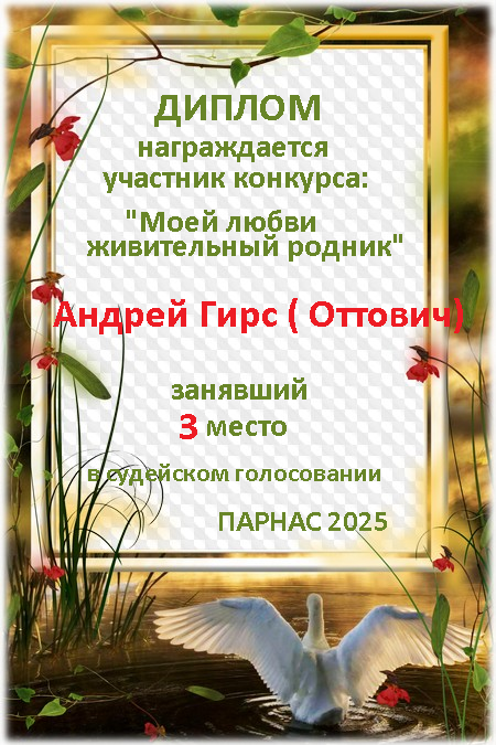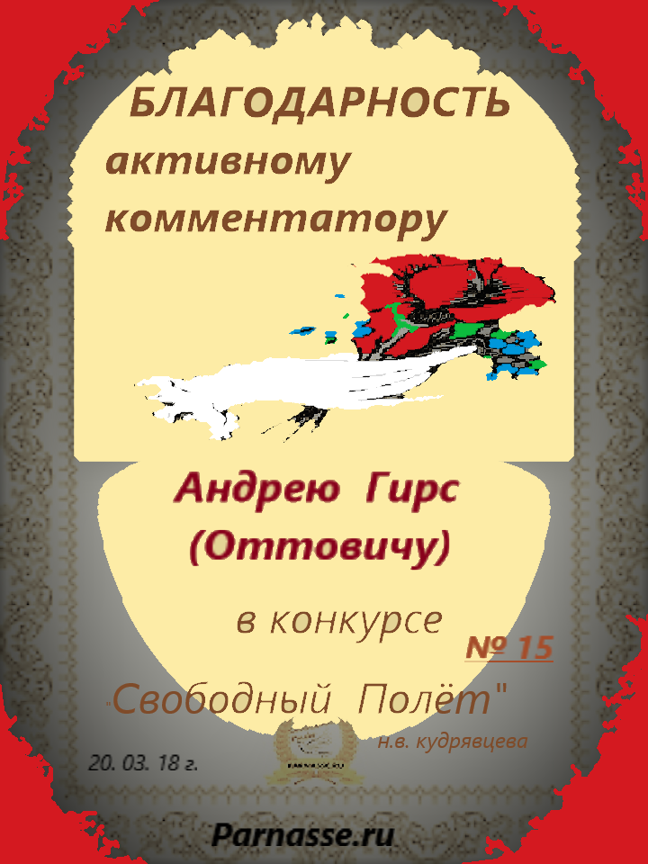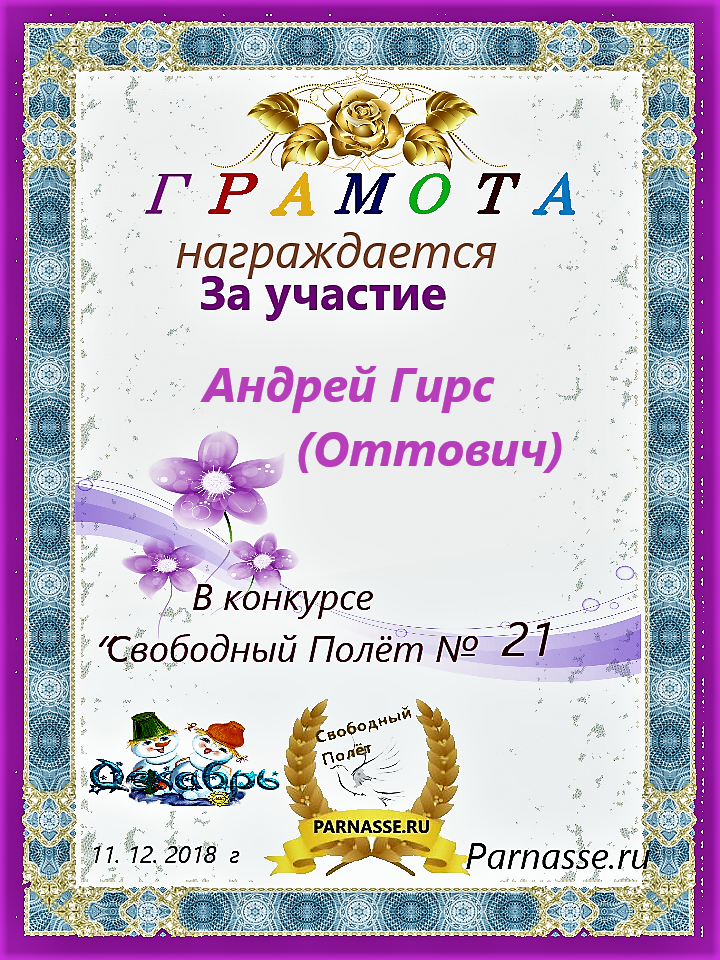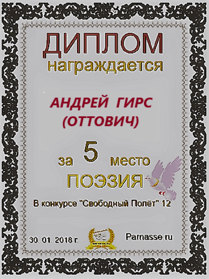 за 3 место в конкурсе "Свободный Полёт" № 36 ПОЭЗИЯ