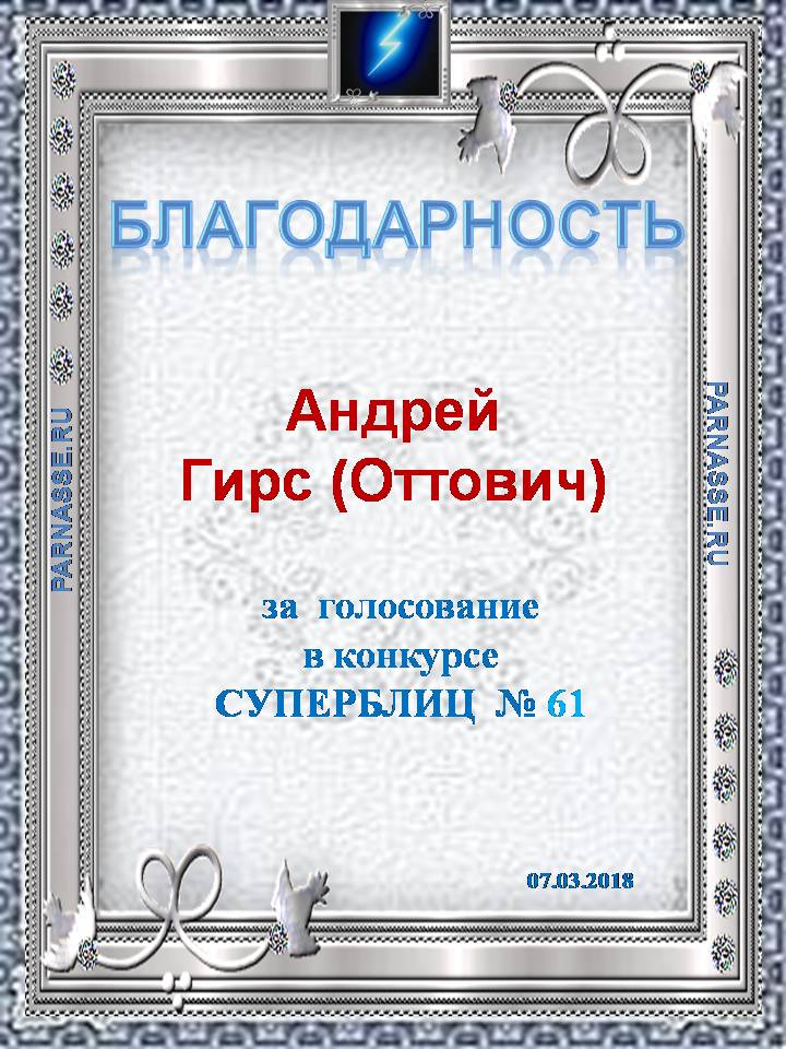 Благодарность за активное голосование в 61 конкурсе СУПЕРБЛИЦА!СПАСИБО БОЛЬШОЕ!