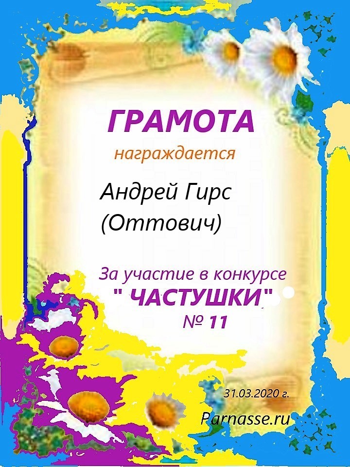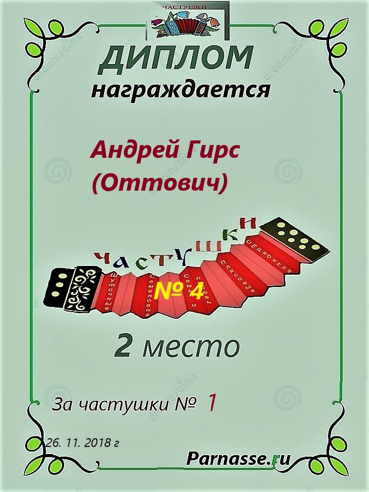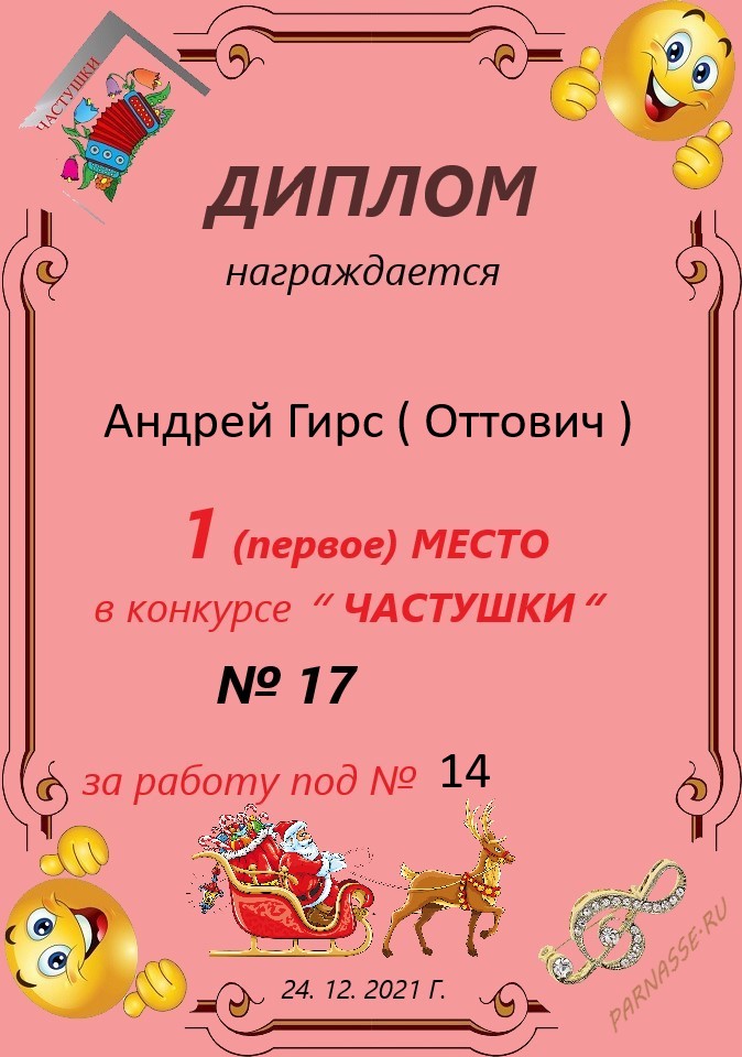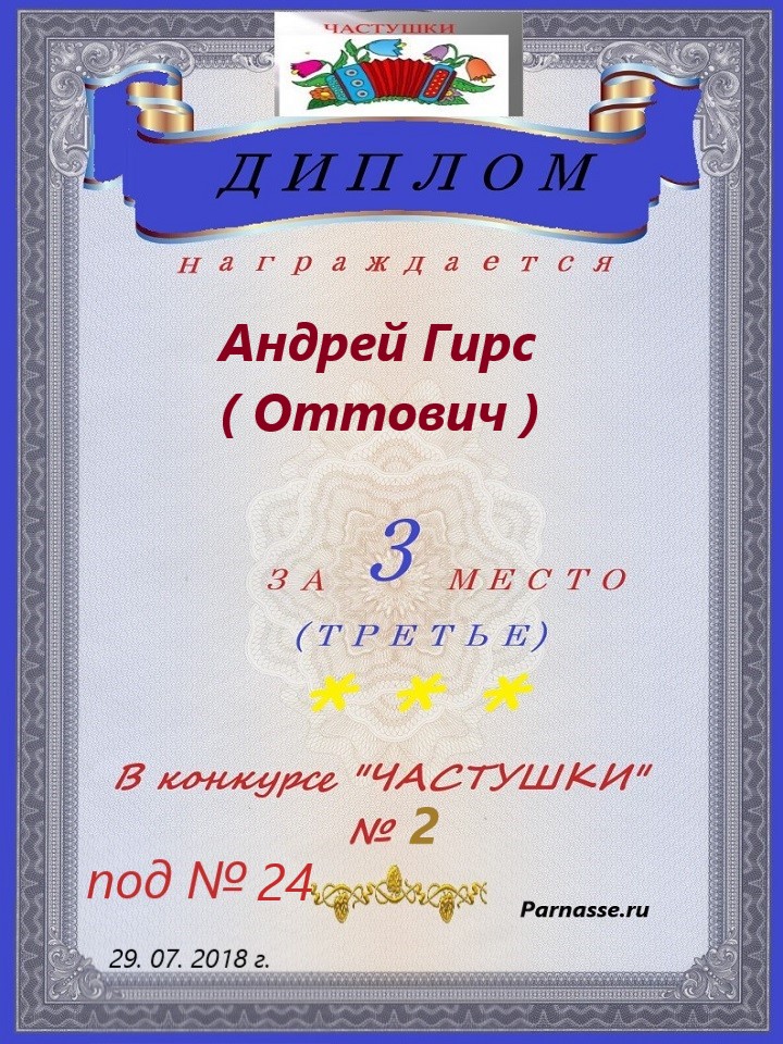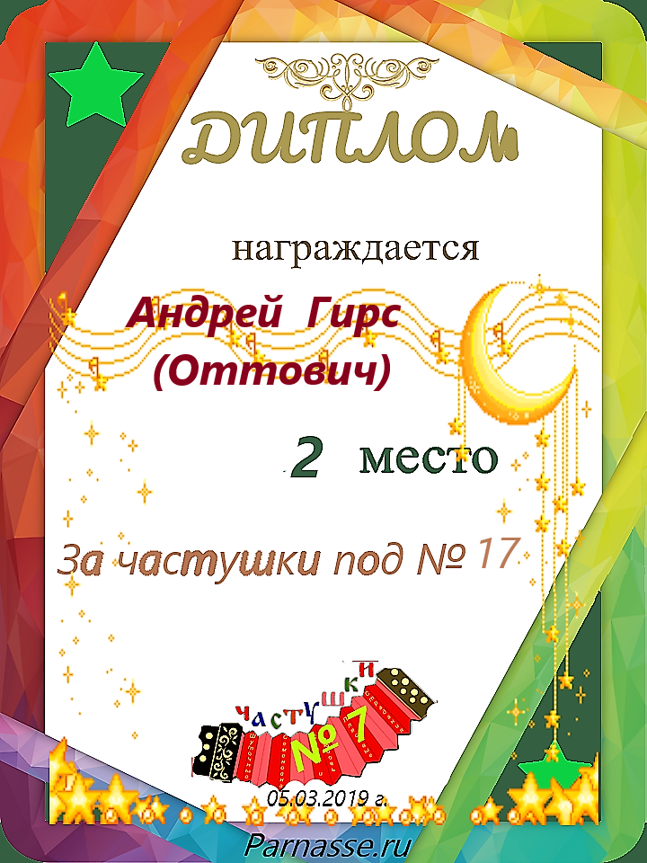 3 место в конкурсе "ЧАСТУШКИ" 17, за работу под № 13