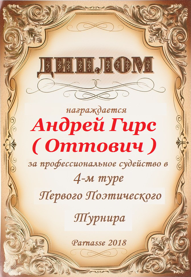 Спасибо за судейство во 4-м туре Первого Поэтического Турнира.
