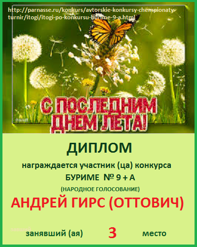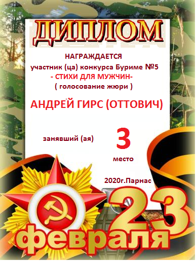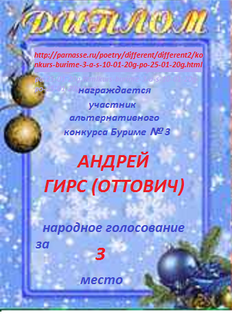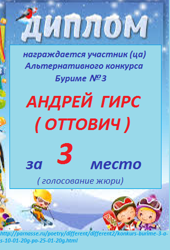 Диплом за 3 место в 109 конкурсе АКРОСТИХА (Альтернатива)! ПОЗДРАВЛЯЮ!