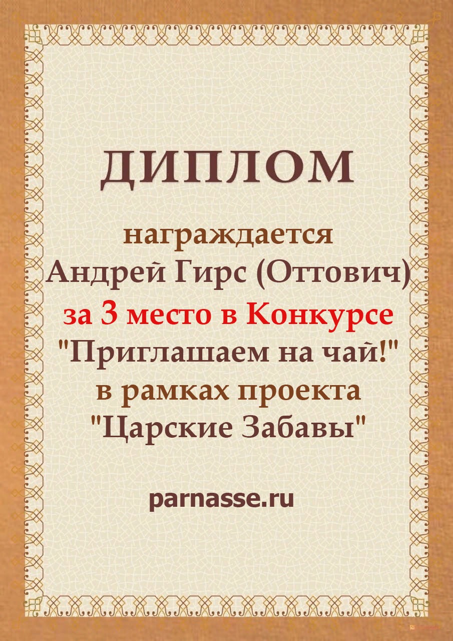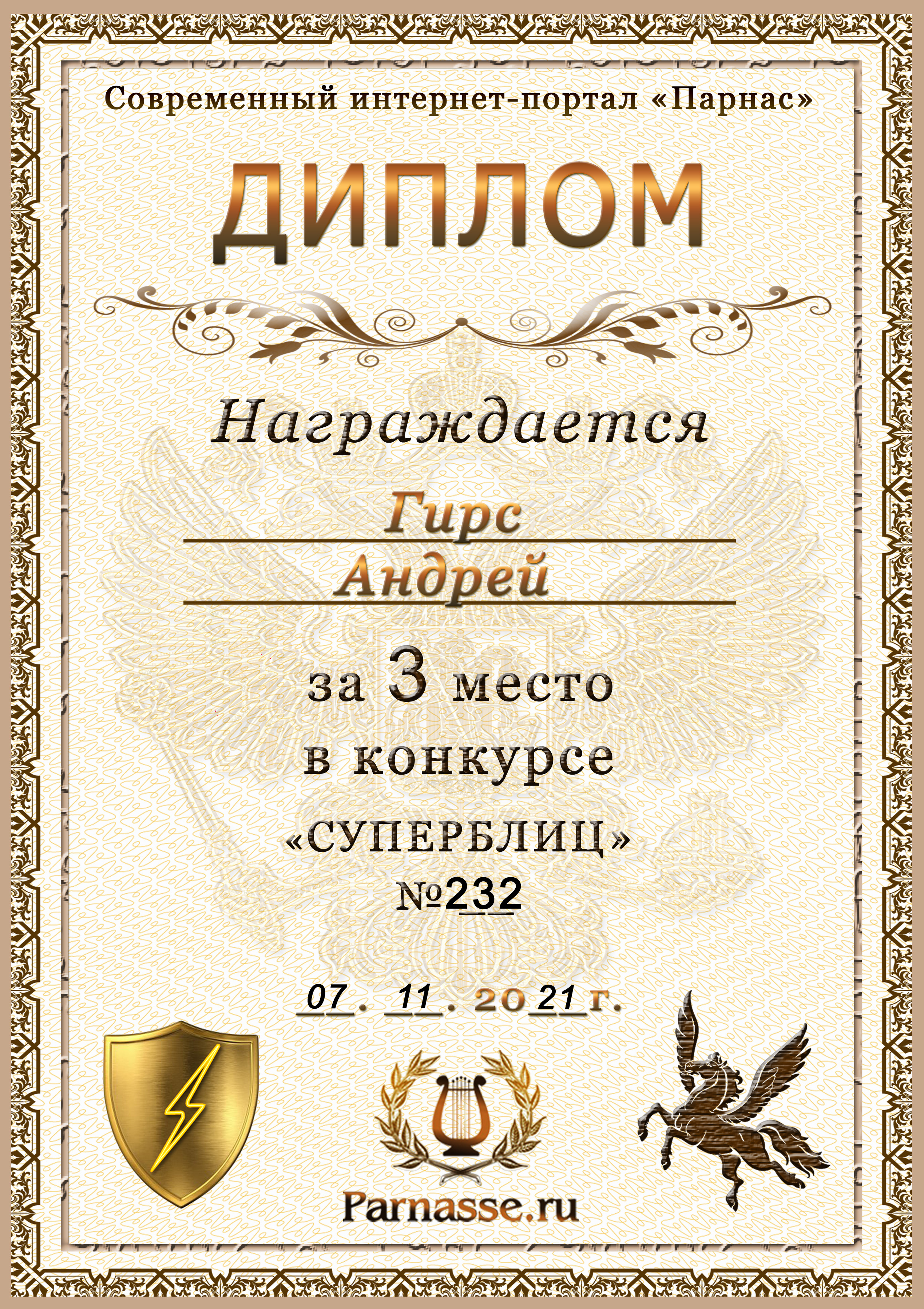 Диплом за 3 место в 113 конкурсе АКРОСТИХА (Альтернатива)! ПОЗДРАВЛЯЮ!