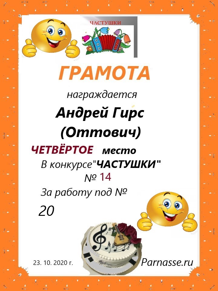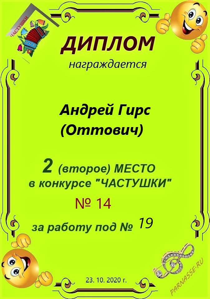 в конкурсе "ЧАСТУШКИ" № 18...за работу под № 14