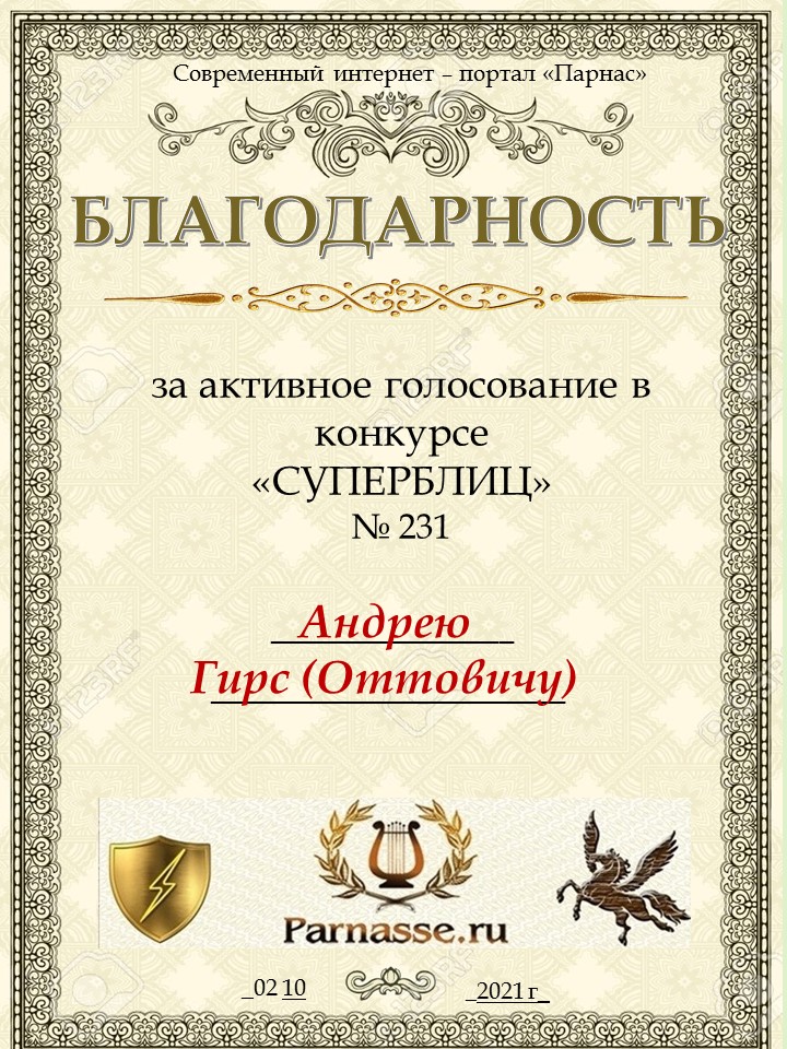 Благодарность за активное голосование в 231 конкурсе СУПЕРБЛИЦА!СПАСИБО БОЛЬШОЕ!