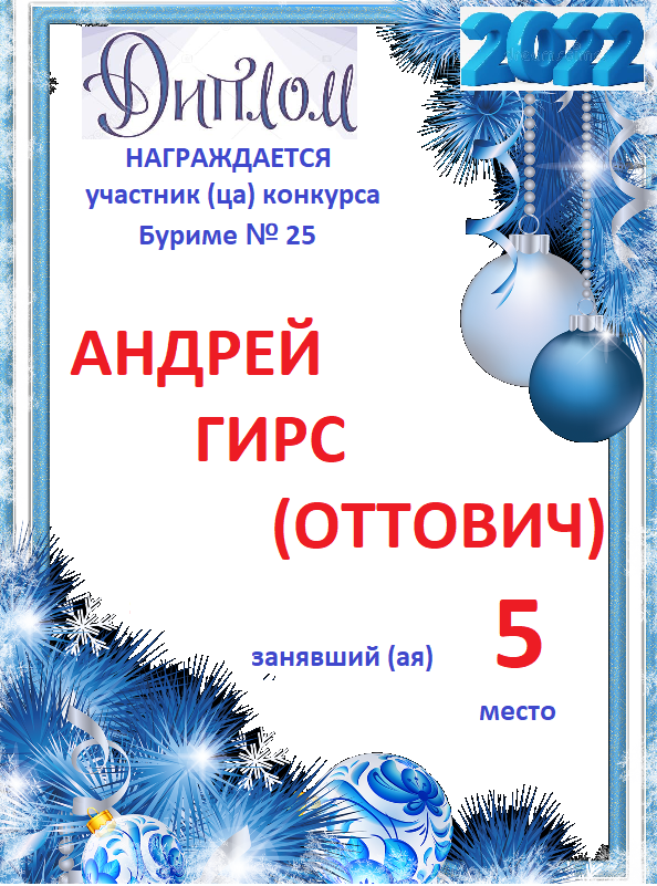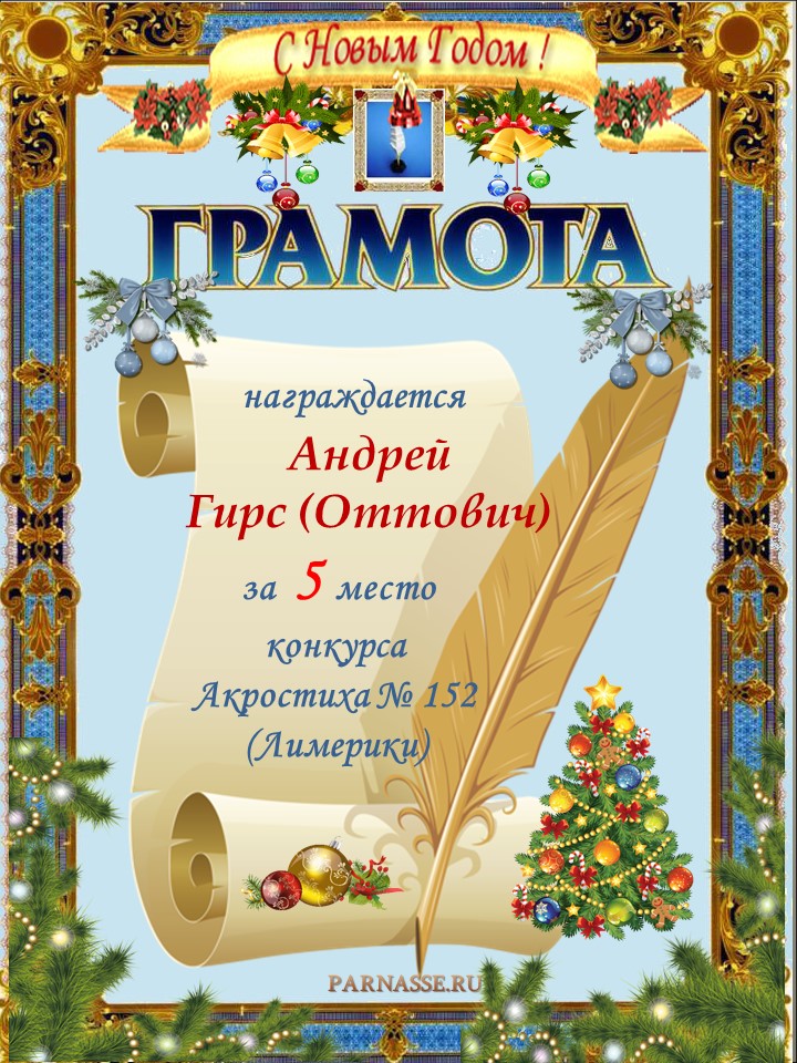 Грамота за 5 место в 152 конкурсе АКРОСТИХА (Альтернатива - лимерики)