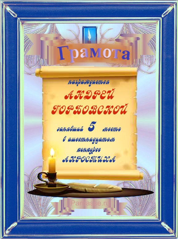 Диплом победителю в конкурсах Акростиха в связи с пятилетием конкурса Акростиха!