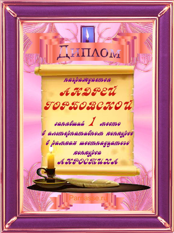 Диплом за 3 место в 1 годовом итоговом конкурсе АКРОСТИХА (Альтернатива)! ПОЗДРАВЛЯЮ!