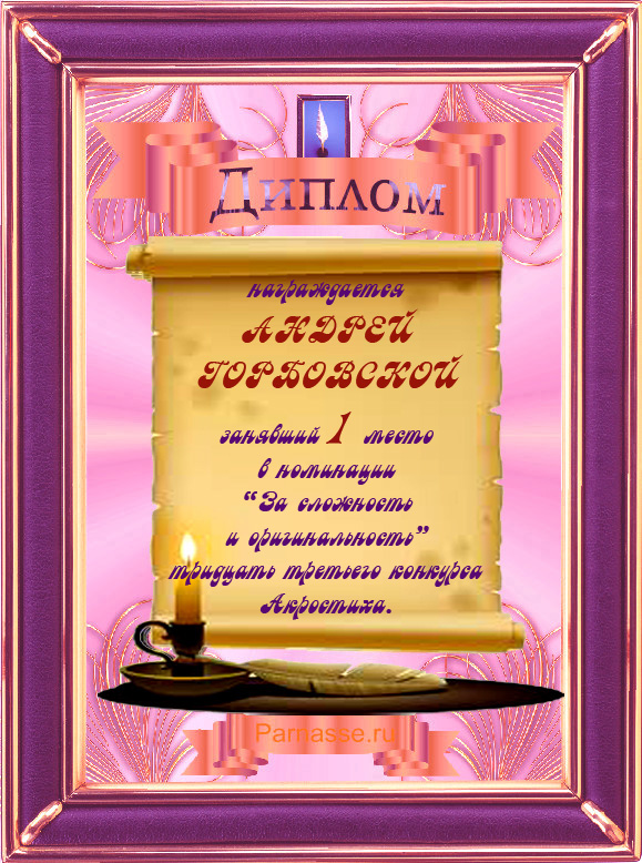 Диплом за победу в 33 конкурсе АКРОСТИХА (Дополнительная номинация «За сложность и оригинальность»)! ПОЗДРАВЛЯЮ!
