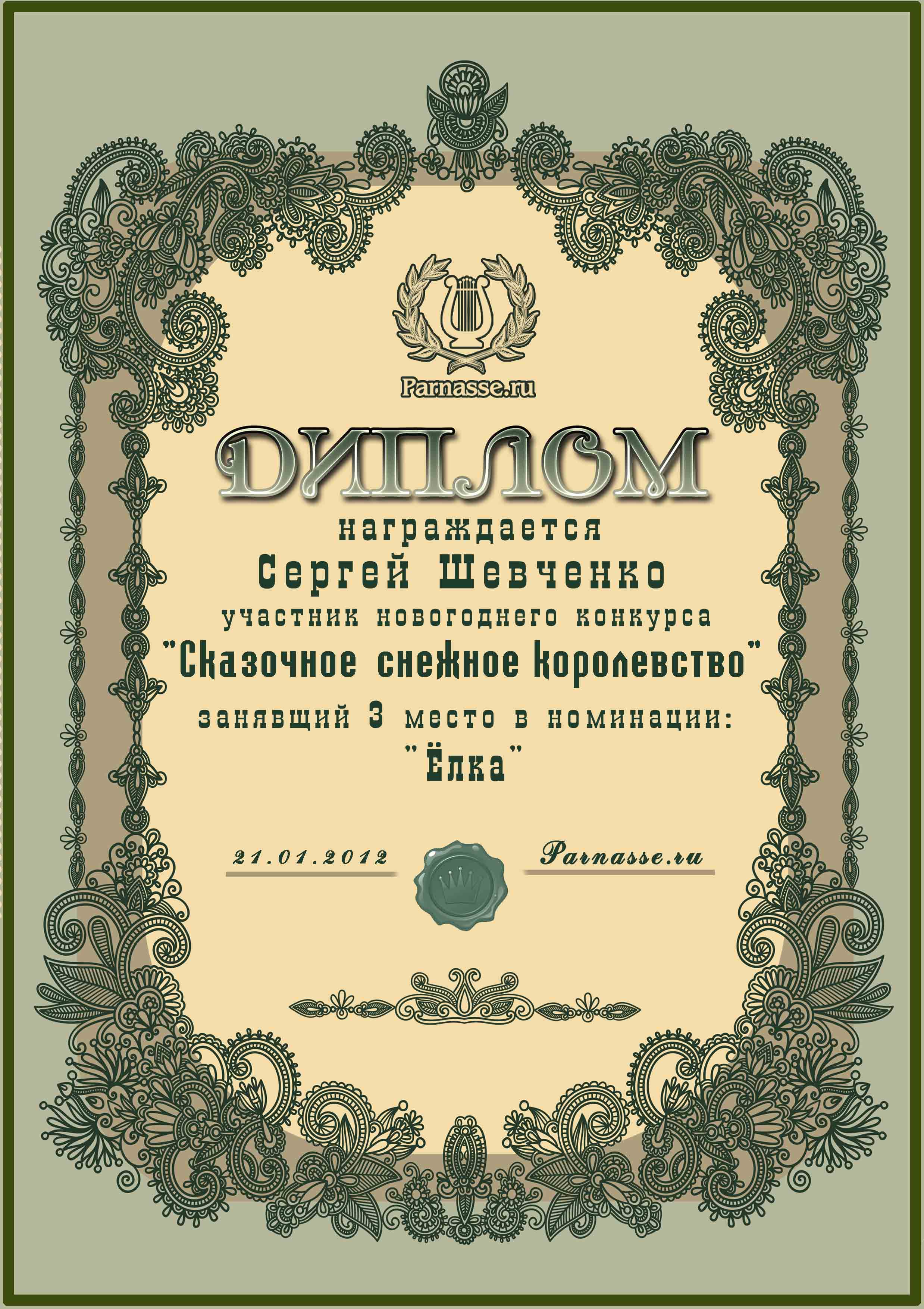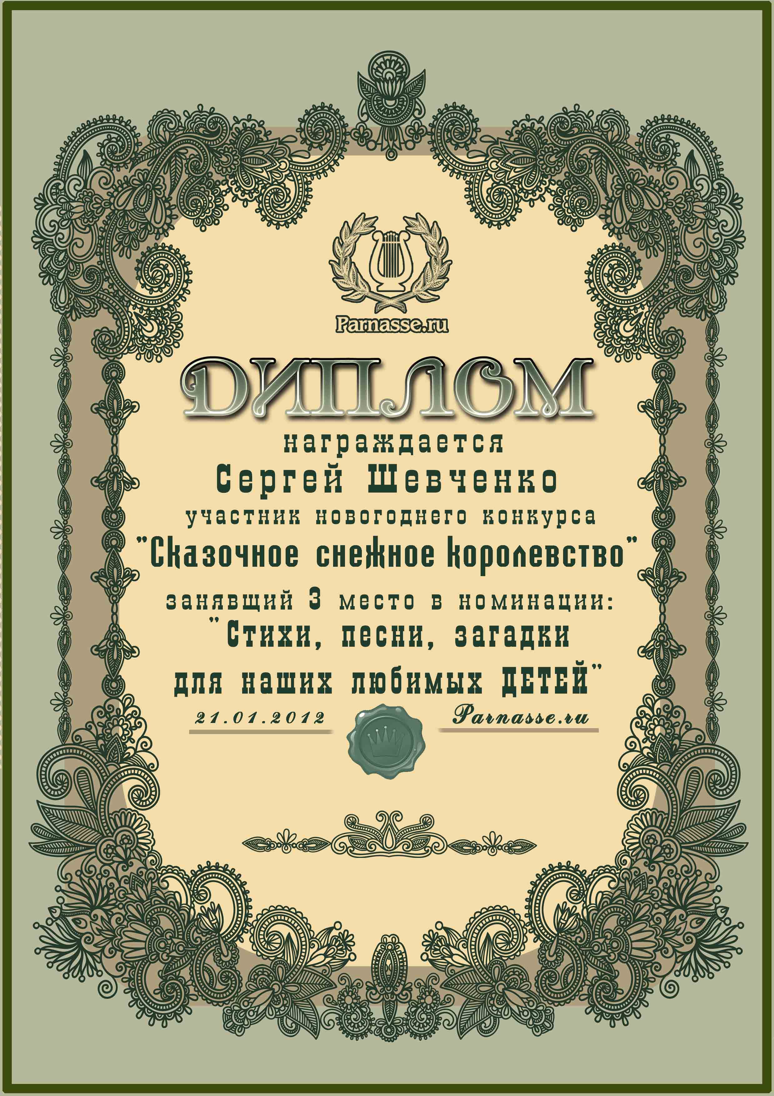Диплом за 3 место в конкурсе "Сказочное снежное королевство!"