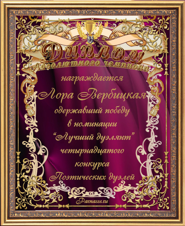 в номинации "ЛУЧШИЙ ДУЭЛЯНТ" 14го конкурса ПОЭТИЧЕСКИХ ДУЭЛЕЙ