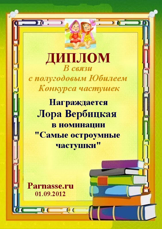 Диплом за победу и 1 место в дополнительной номинации конкурса лимериков № 41+ (9.09.2013г.)