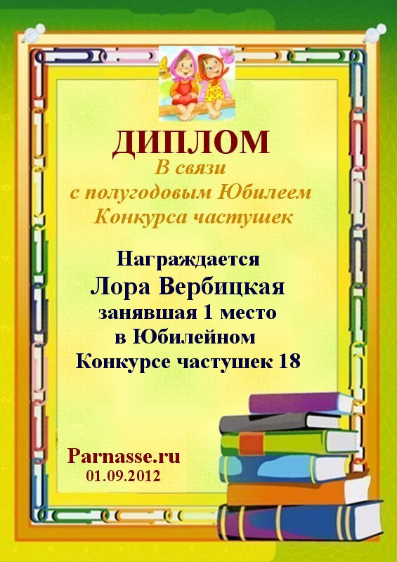 Диплом за победу и 1 место в конкурсе лимериков № 37+ (17.06.2013г.)