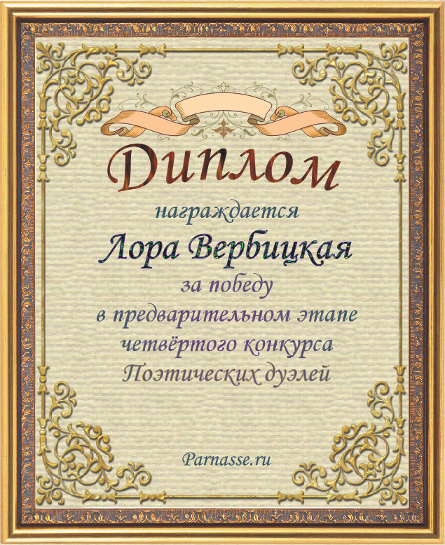 Диплом за победу в предварительном этапе четвёртого конкурса поэтических дуэлей