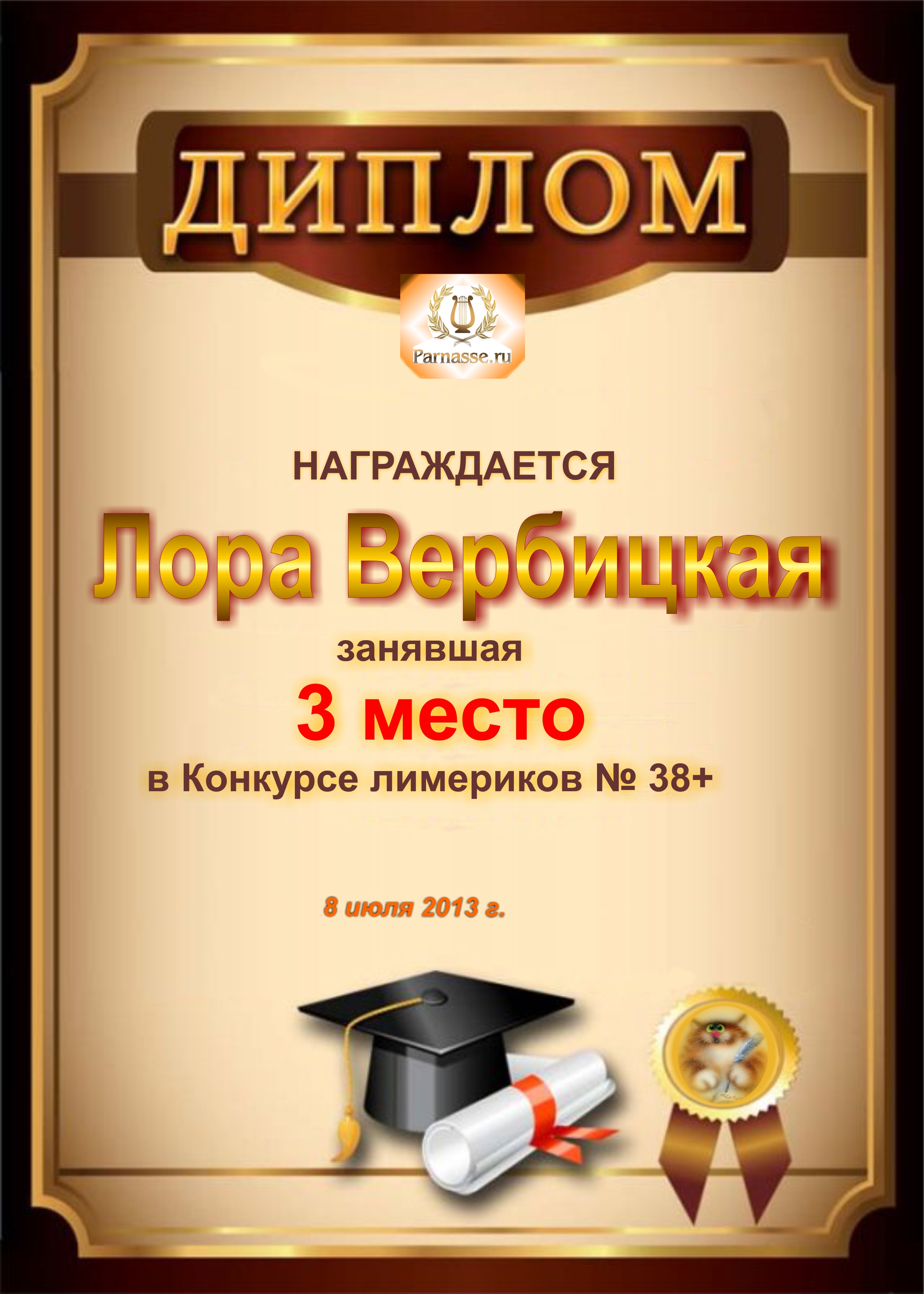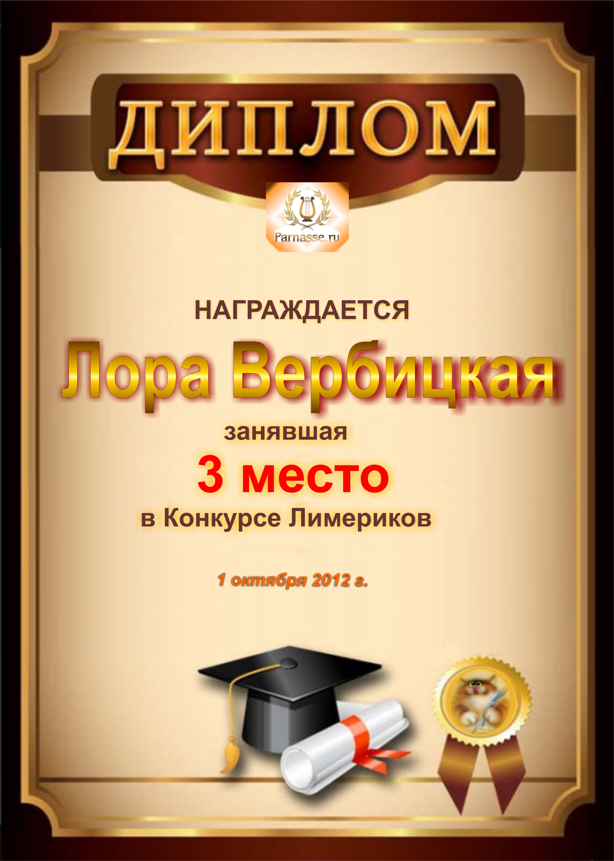 Диплом за победу и 3 место в конкурсе лимериков № 41+ (9.09.2013г.)