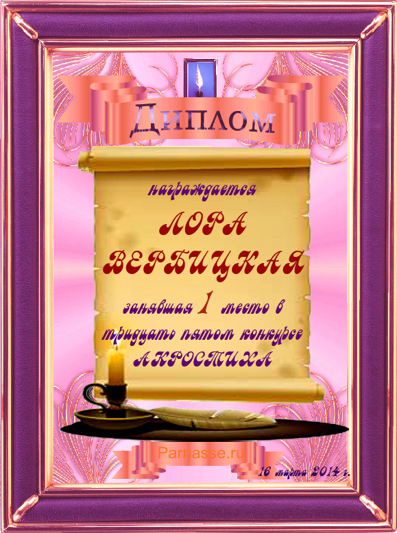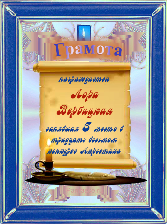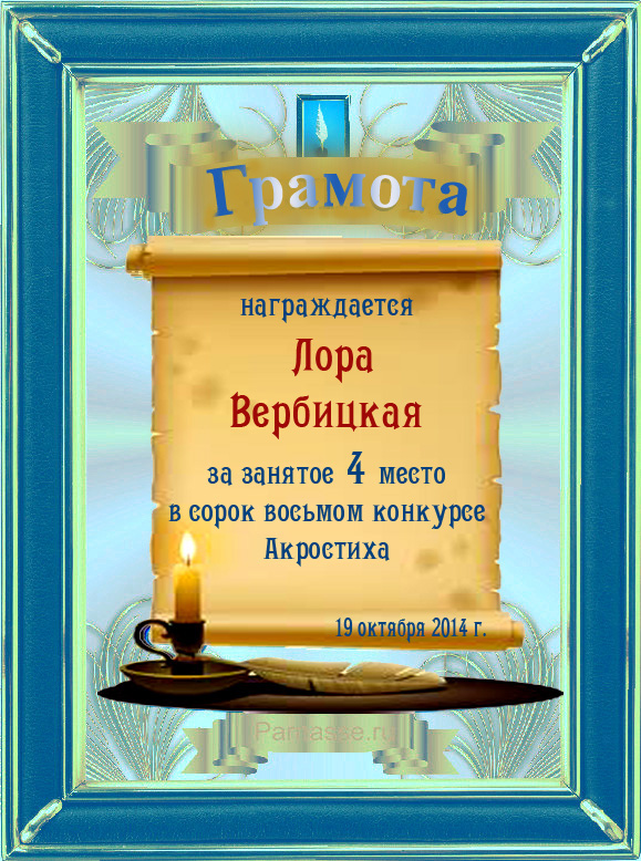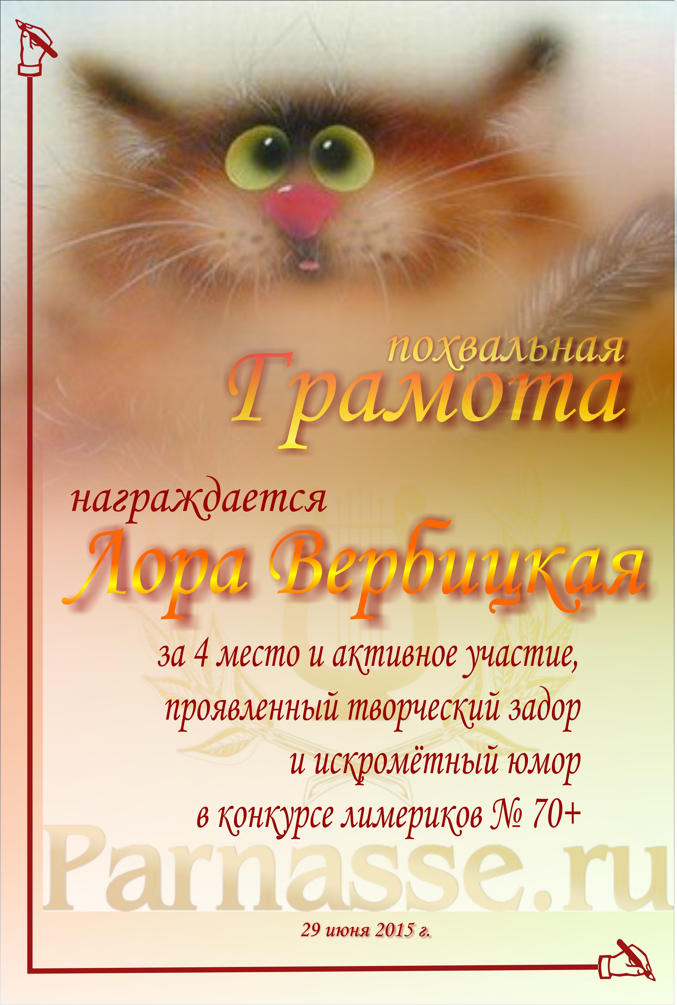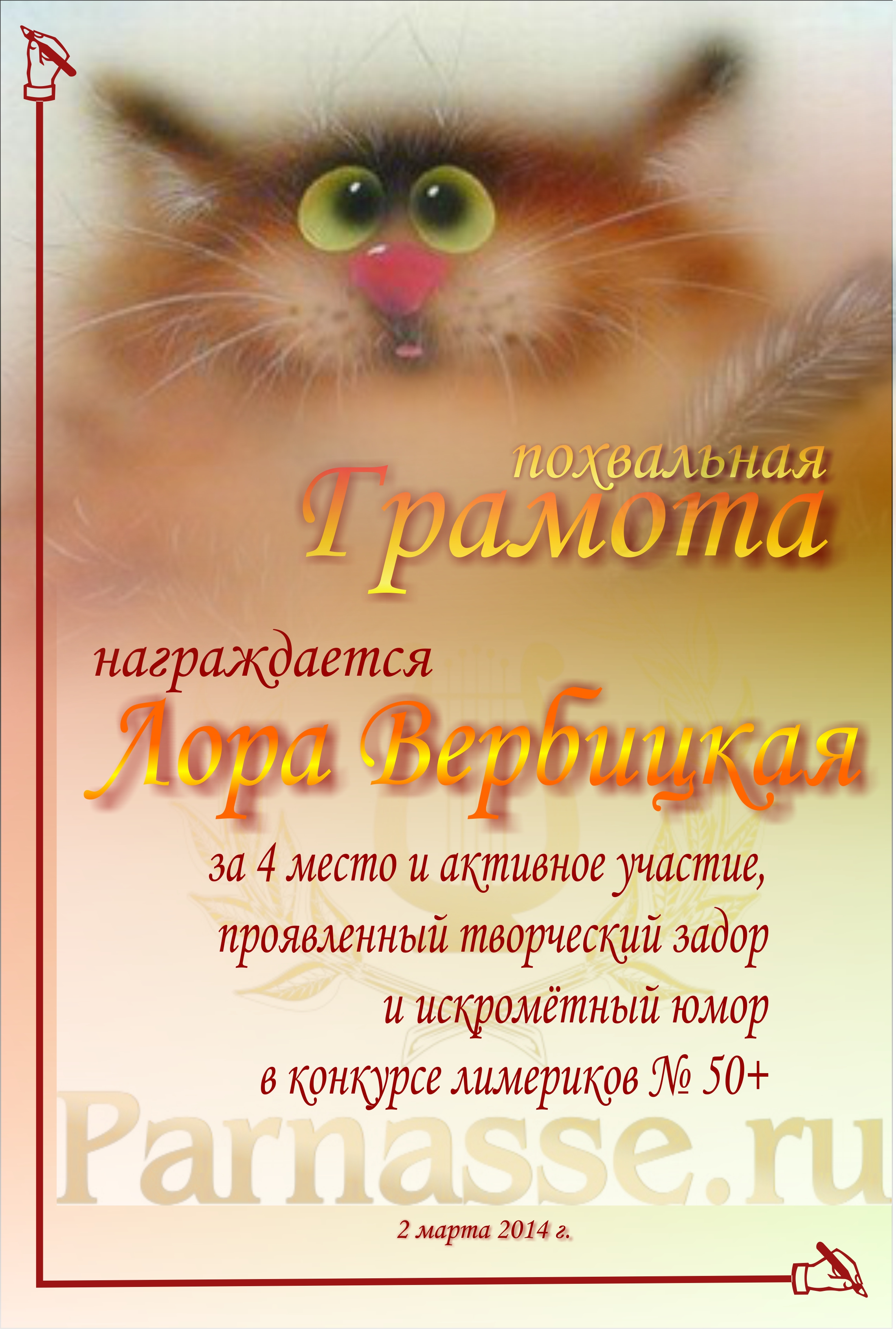 Похвальная грамота за 4 место и активное участие в конкурсе лимериков № 50+ (2.03.2014 г.)