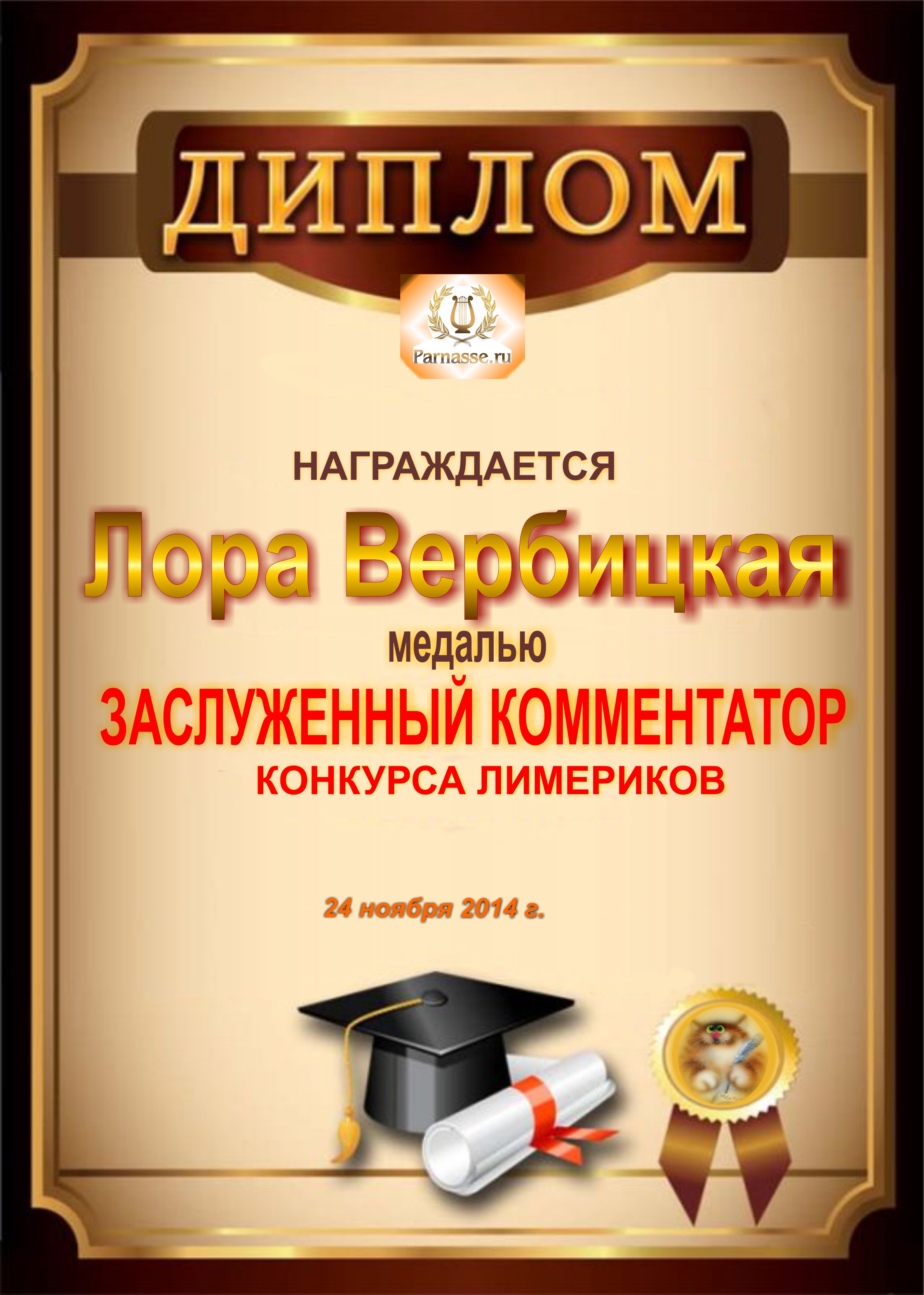 Похвальная грамота за 4 место и активное участие в конкурсе лимериков № 62+ (24.11.2014 г.)