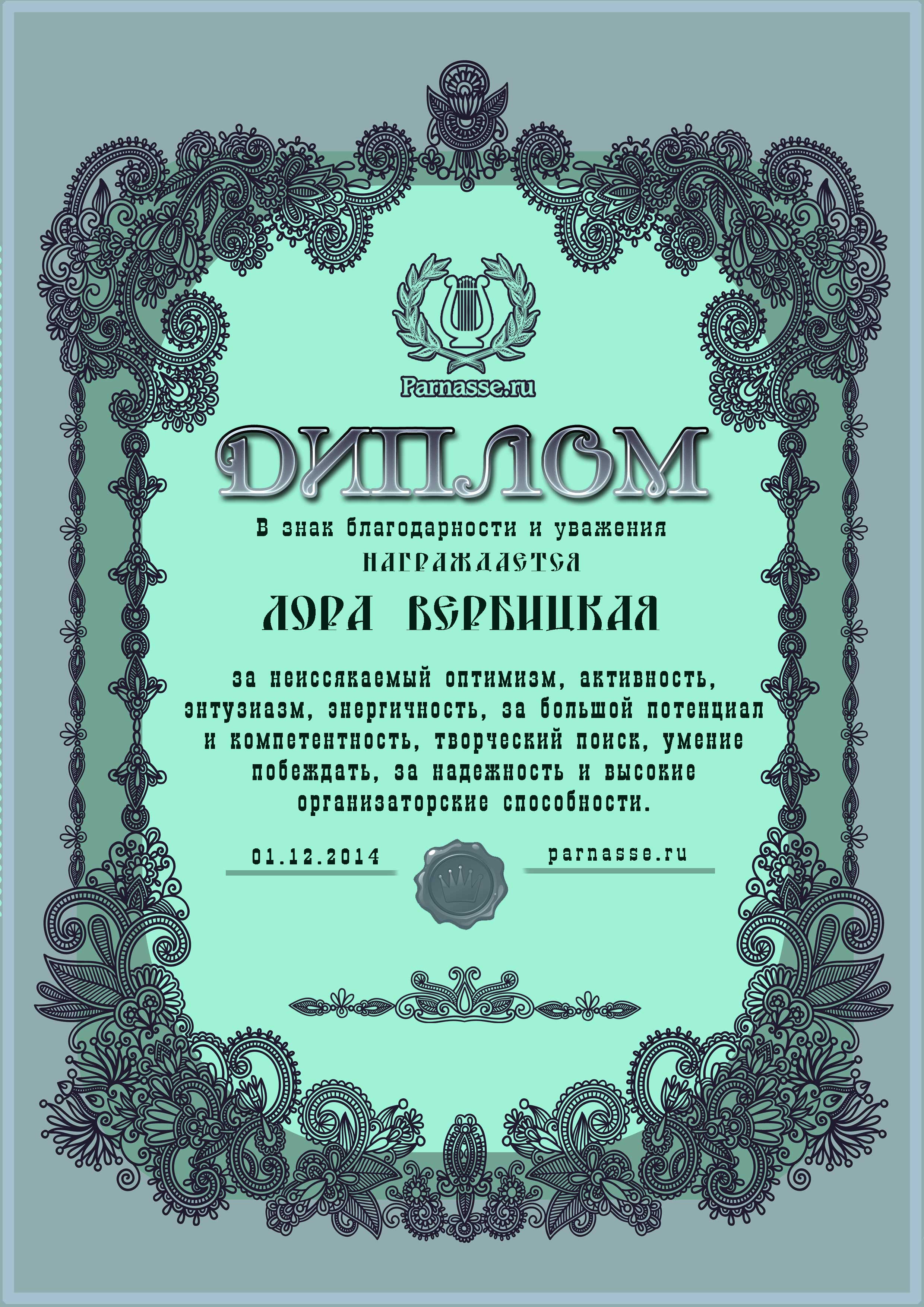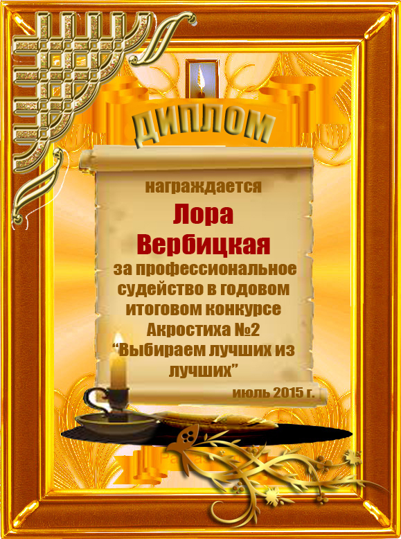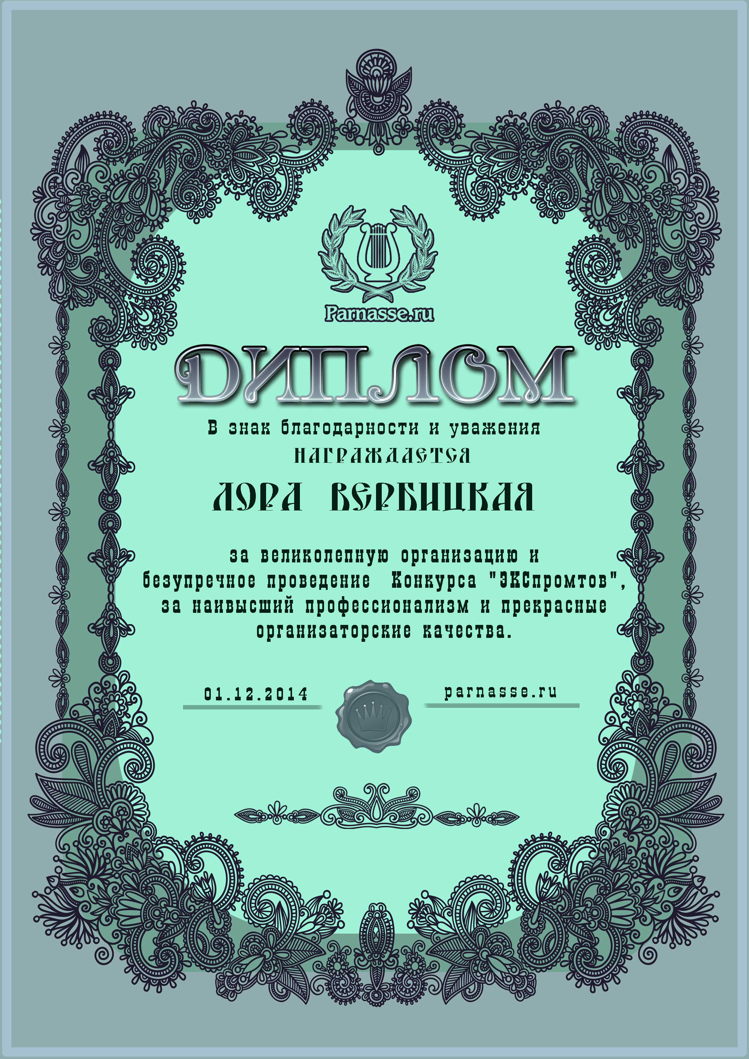 ДИПЛОМ ЗА ПРОФЕССИОНАЛЬНОЕ СУДЕЙСТВО ДВЕНАДЦАТОГО КОНКУРСА ПОЭТИЧЕСКИХ ДУЭЛЕЙ