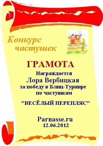 Лора! Поздравляем с победой в Конкурсе частушек №13 !Новых успехов, новых побед!