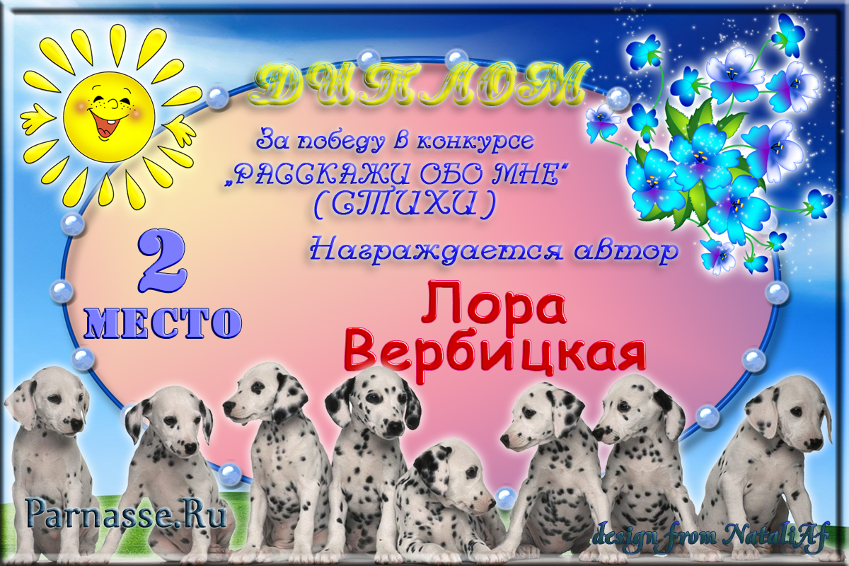 ДИПЛОМ ЗА ВТОРОЕ МЕСТО В КОНКУРСЕ "РАССКАЖИ ОБО МНЕ" ПОЭЗИЯ