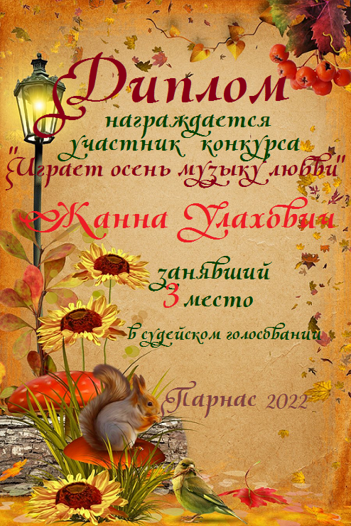 Третье место в судейском голосовании по итогам первого конкурса - триады "Играет осень музыку любви"