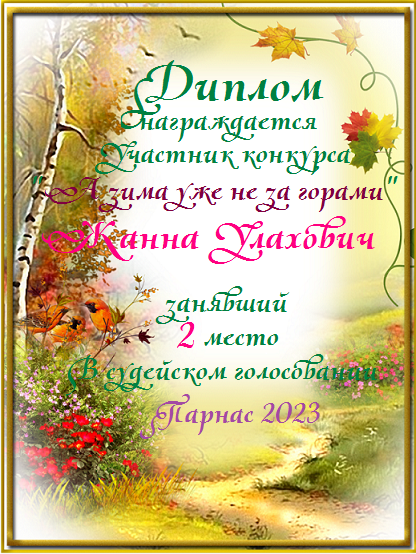 Второе место в судейском голосовании по итогам третьего конкурса - триада "А зима уже не за горами"