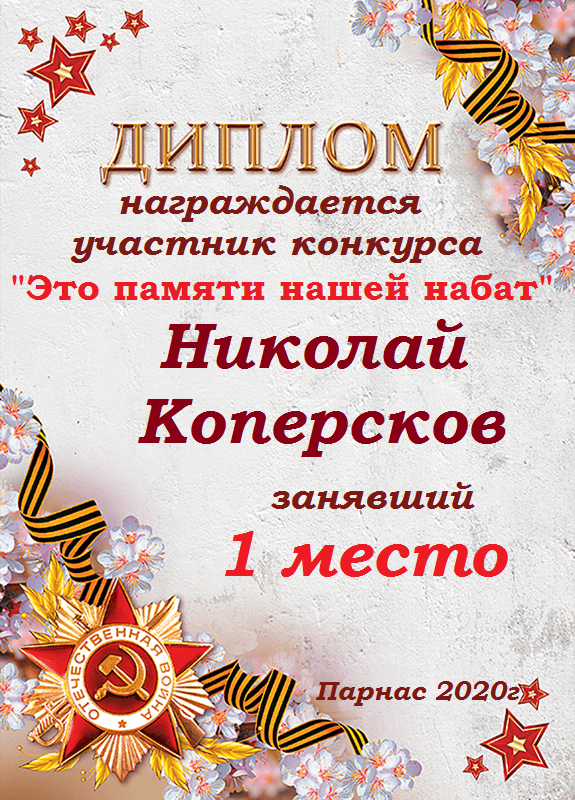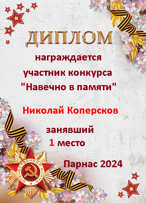 Первое место по решению Администрации и Главного судьи конкурса "Навечно в памяти"