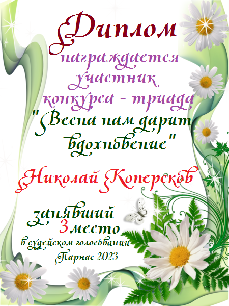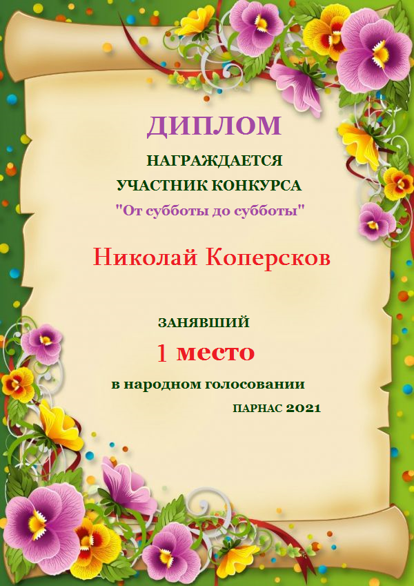 2 место место в судейском голосовании по итогам конкурса "Май хмельной стучится в окна"