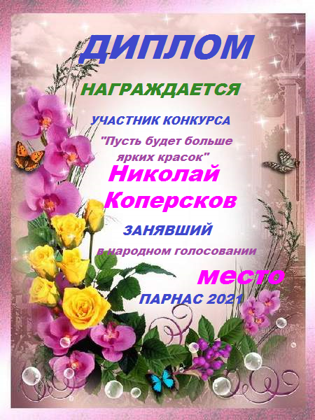 Подарок/пожелание от: Валентина Владова Время: 20 января 2021 в 11:31 Пожелание: Дорогие мои друзья! Игра заканчивается. Огромное спасибо Вам за общение! Будьте счастливы и любимы! Мира - вашему дому! Счастья - вашему сердцу! Мечтам - поскорее сбыться! Желаниям - осуществиться! |