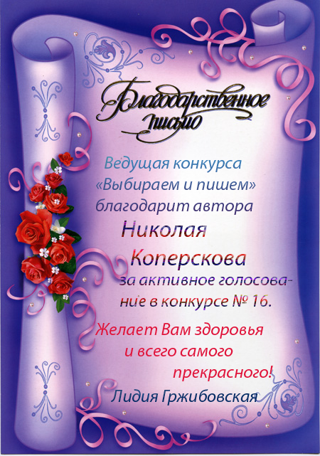 Благодарим за поддержку и голосование в конкурсе Поэзия чувств
