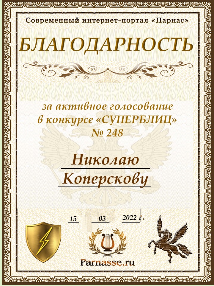 Благодарность за активное голосование в 248 конкурсе СУПЕРБЛИЦАСПАСИБО БОЛЬШОЕ!