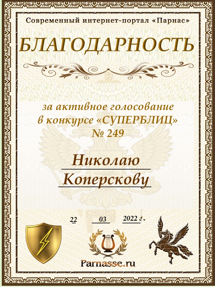 Благодарность за активное голосование в 249 конкурсе СУПЕРБЛИЦАСПАСИБО БОЛЬШОЕ!