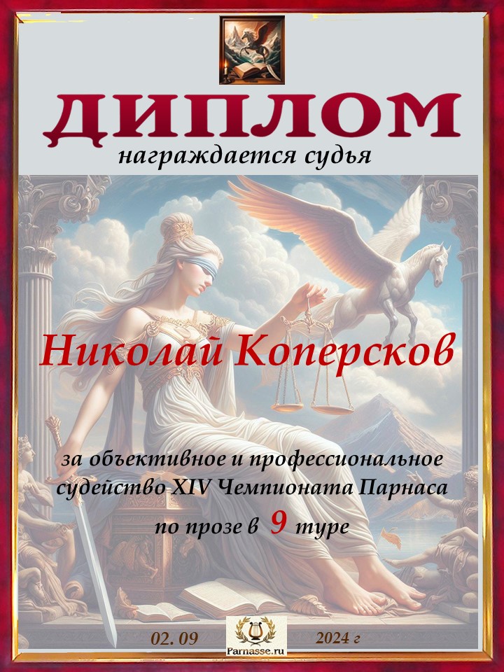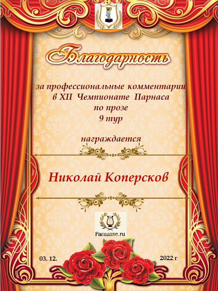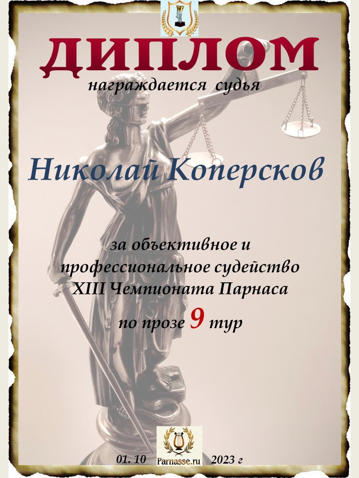 Спасибо за объективное и профессиональное судейство в 9 туре XIII Чемпионате Парнаса по прозе!
