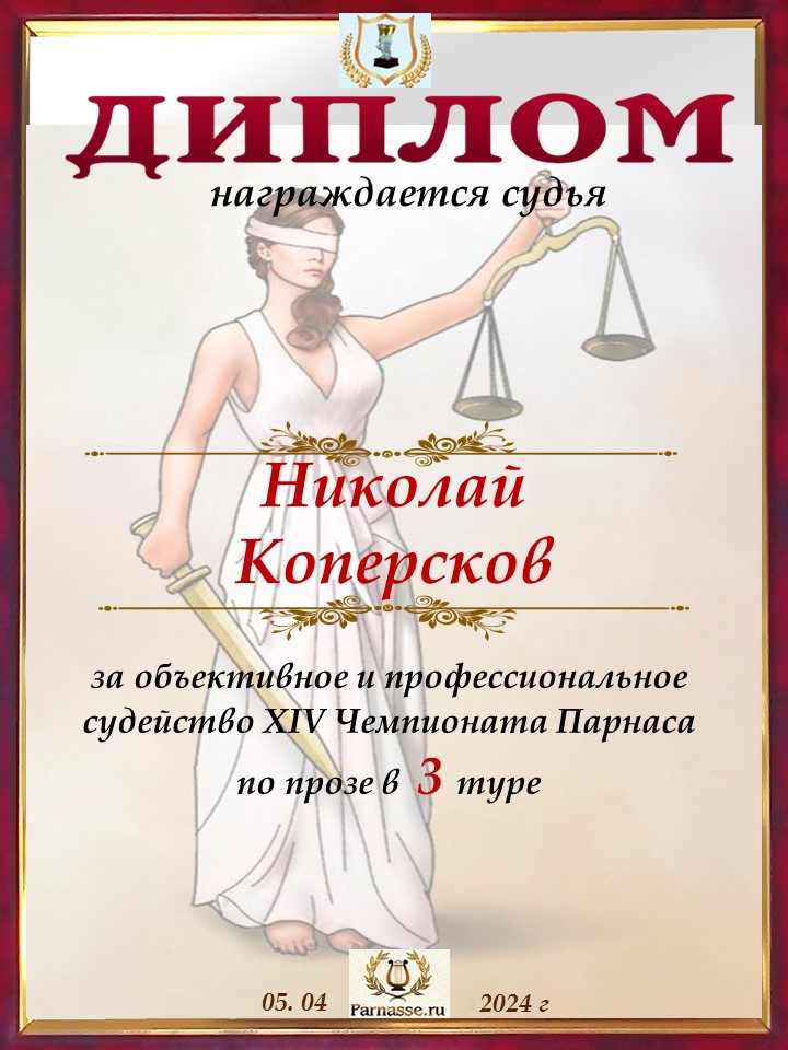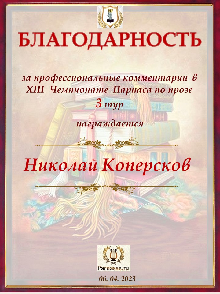 Спасибо за объективное и профессиональное судейство в 3 туре XIV Чемпионате Парнаса по прозе!