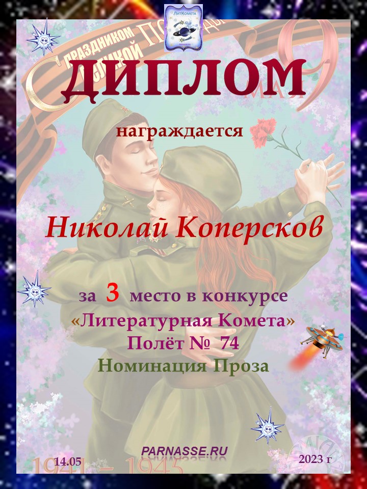 Поздравляю с занятым 3 местом в конкурсе "ЛитКомета - Полёт № 74" - Номинация Проза!