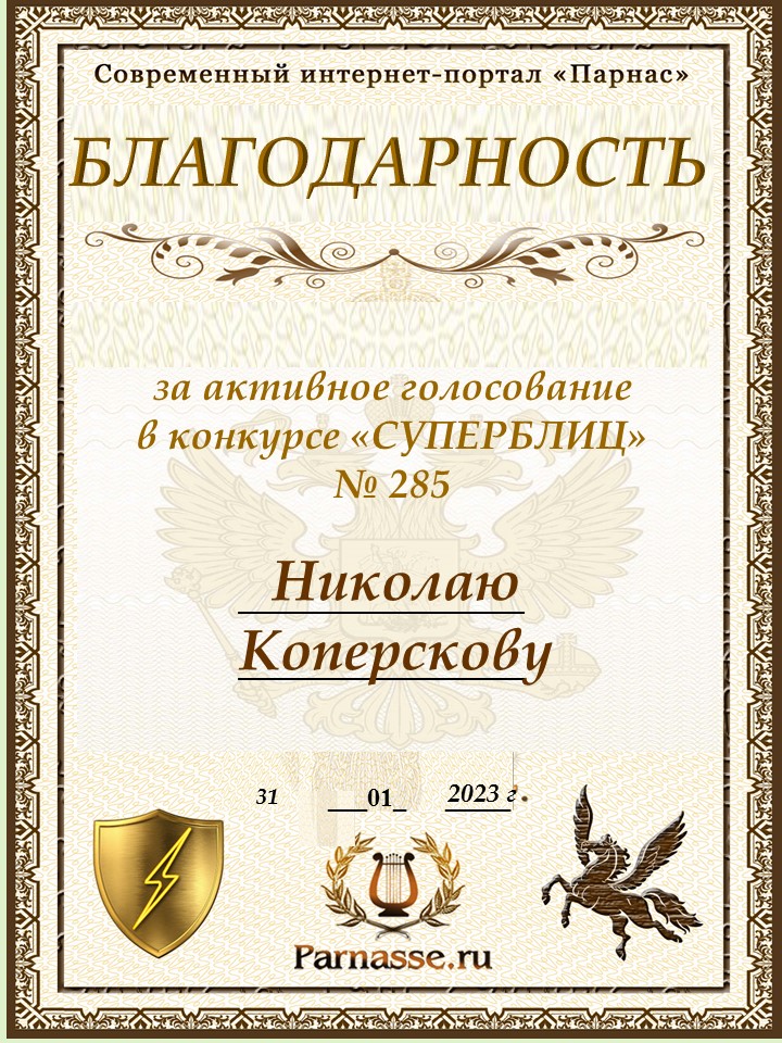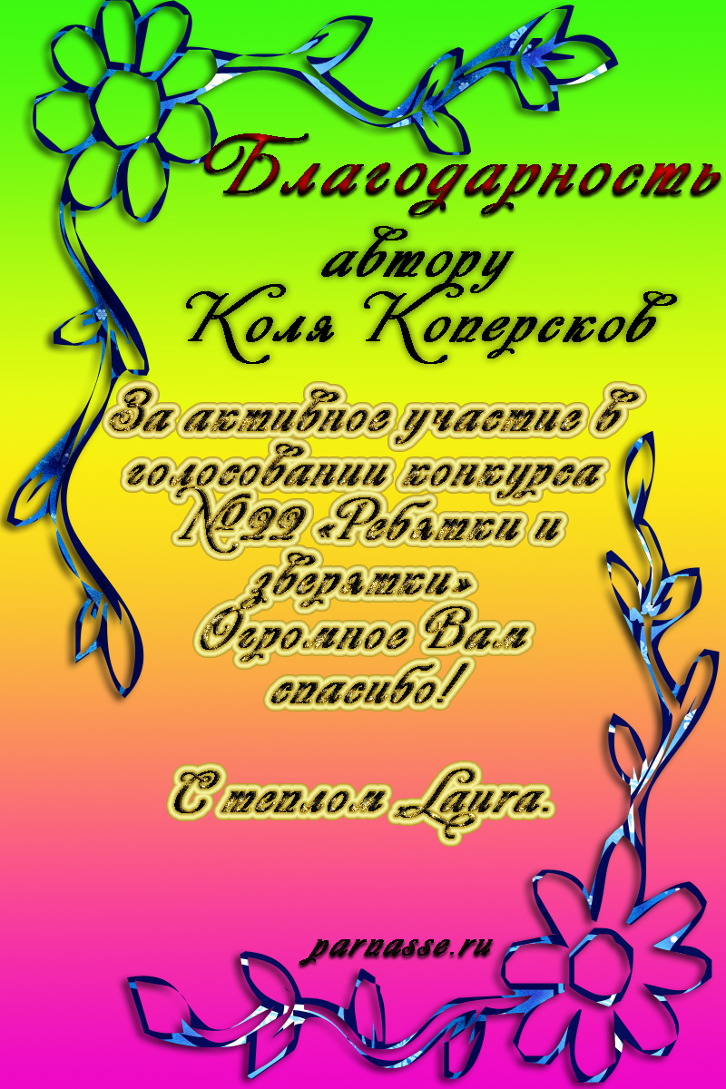 Благодарность за активное голосование в 285 конкурсе СУПЕРБЛИЦАСПАСИБО БОЛЬШОЕ!