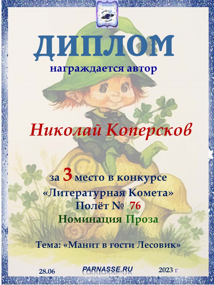 Поздравляю с занятым 3 местом в конкурсе "ЛитКомета - Полёт № 76" - Номинация Проза!