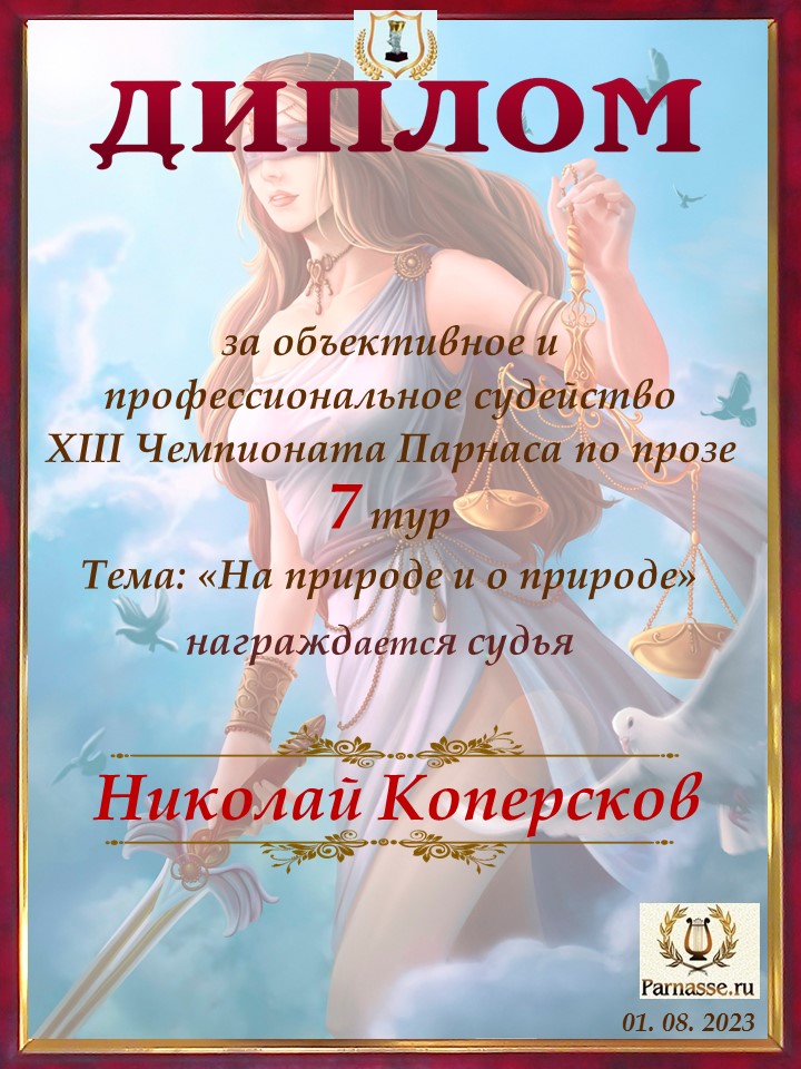 Спасибо за объективное и профессиональное судейство в 7 туре XIII Чемпионате Парнаса по прозе!