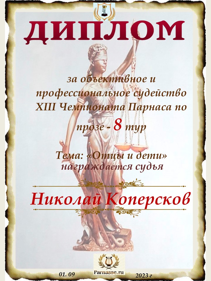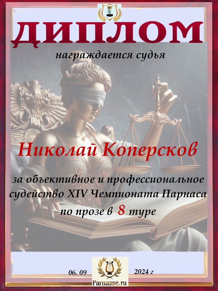Спасибо за объективное и профессиональное судейство в 8 туре XIII Чемпионате Парнаса по прозе!