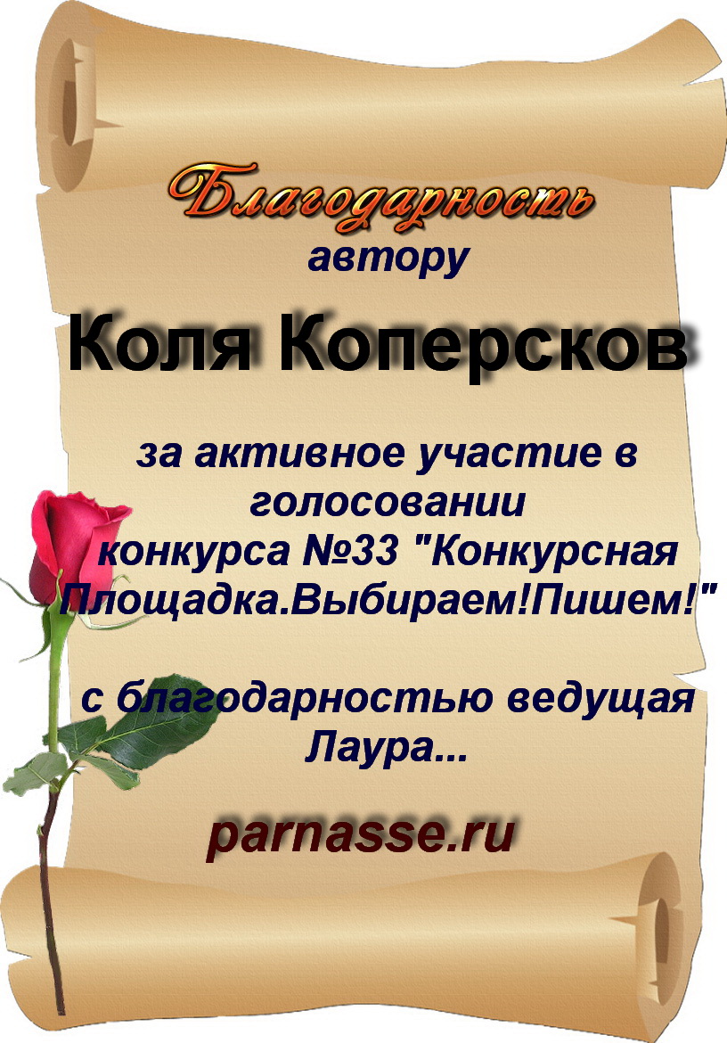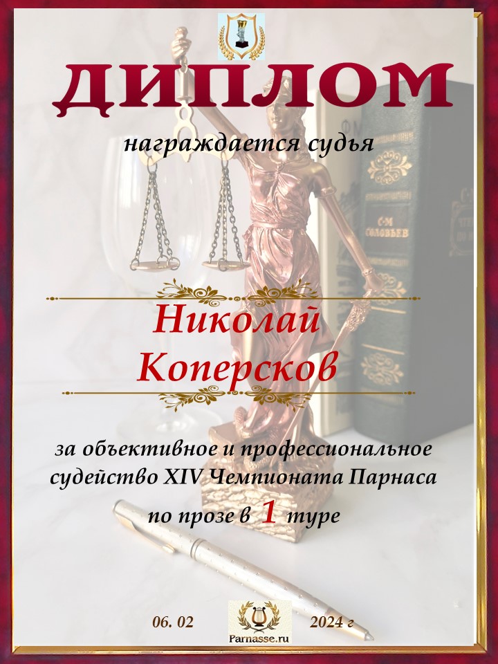 Спасибо за объективное и профессиональное судейство в 12 туре XIII Чемпионате Парнаса по прозе!