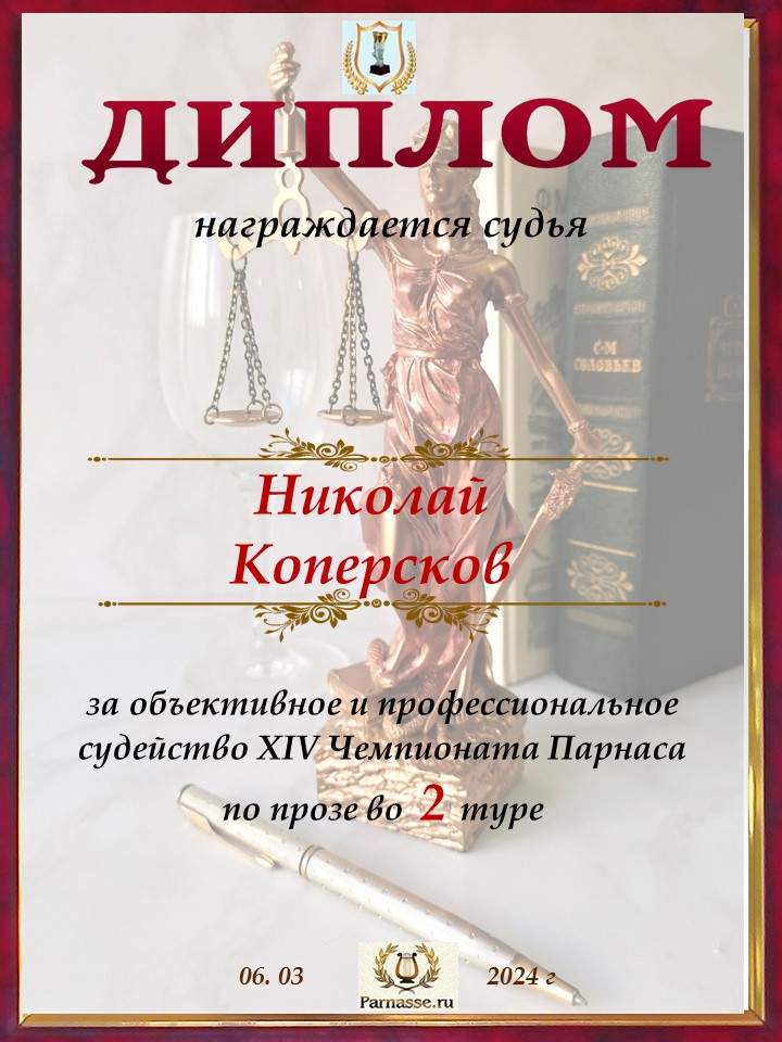 Спасибо за объективное и профессиональное судейство во 2 туре XIV Чемпионате Парнаса по прозе!