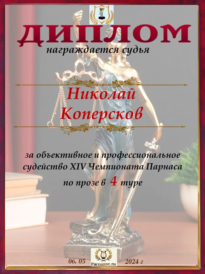 Спасибо за объективное и профессиональное судейство в 4 туре XIV Чемпионате Парнаса по прозе!