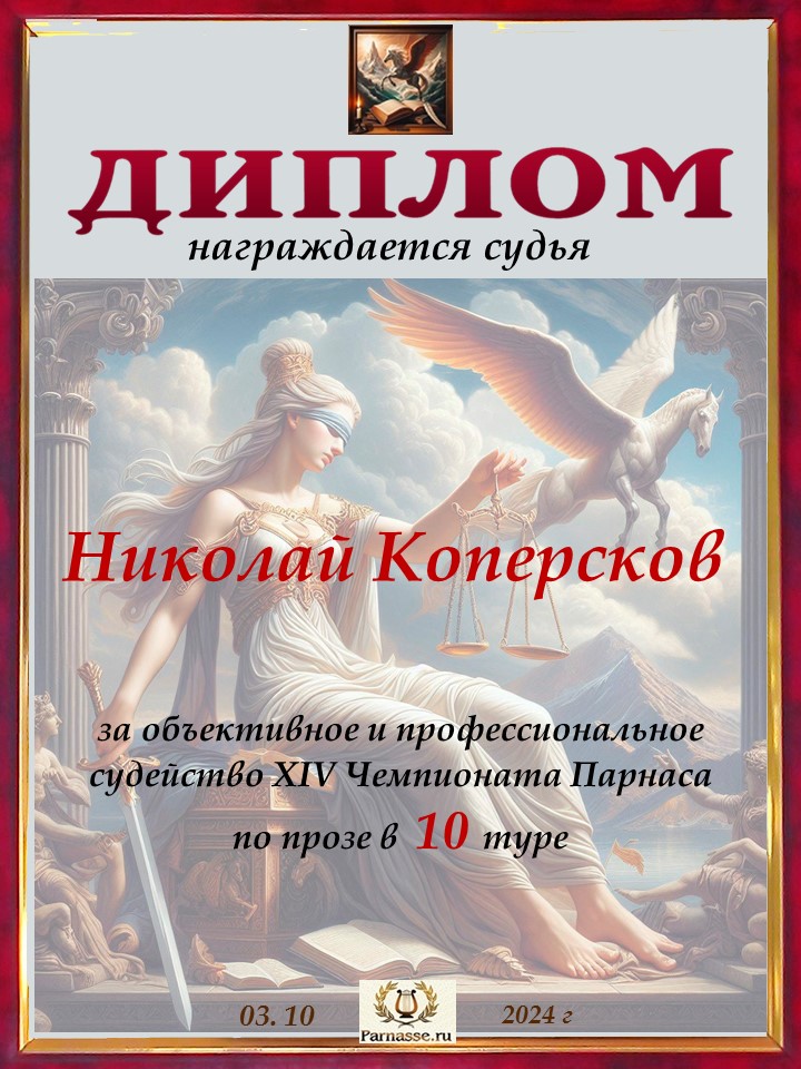 Спасибо за объективное и профессиональное судейство в 10 туре XIII Чемпионате Парнаса по прозе!