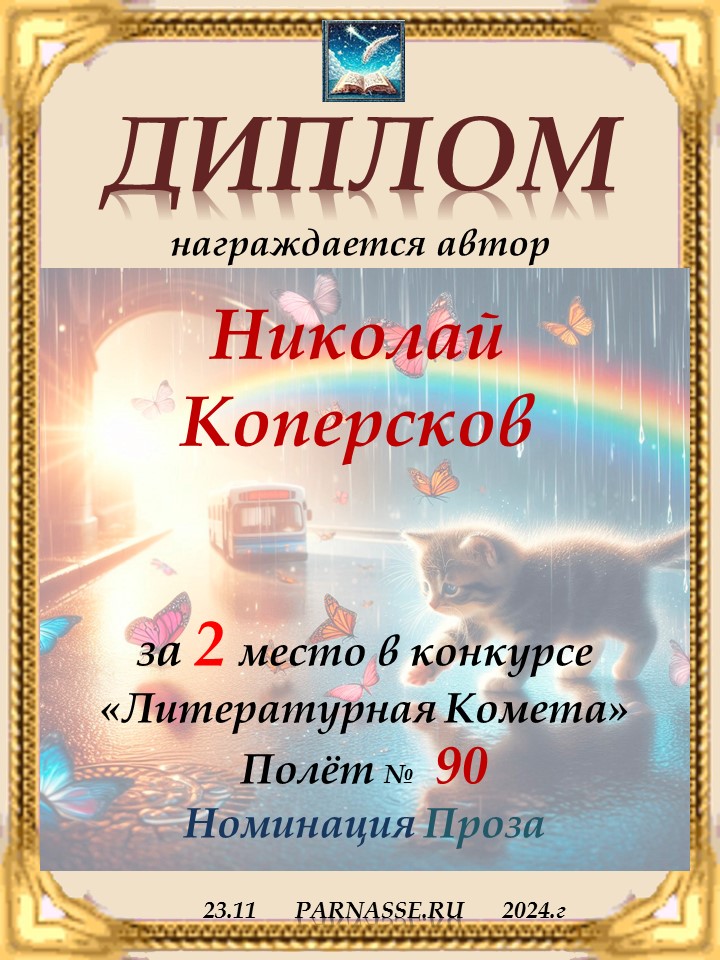 Поздравляю с занятым 2 местом в конкурсе "ЛитКомета - Полёт № 90" - Номинация Проза!