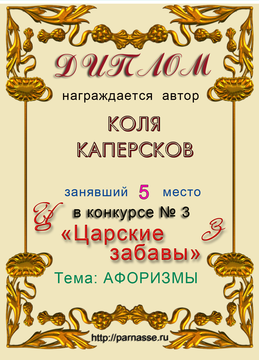 Медаль от ведущей конкурса "Афоризмы о весне" за яркую индивидуальность афоризмов!