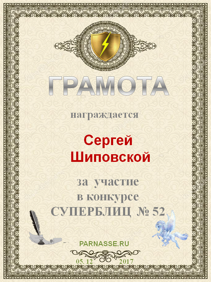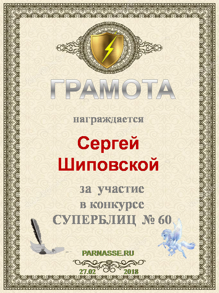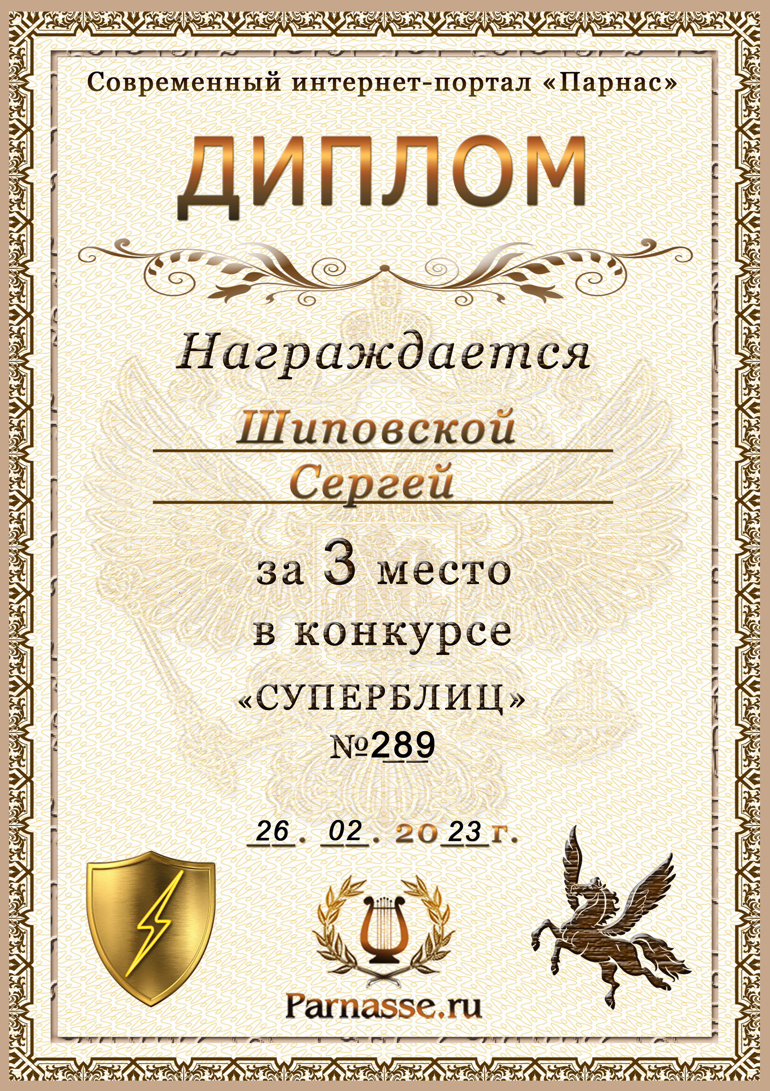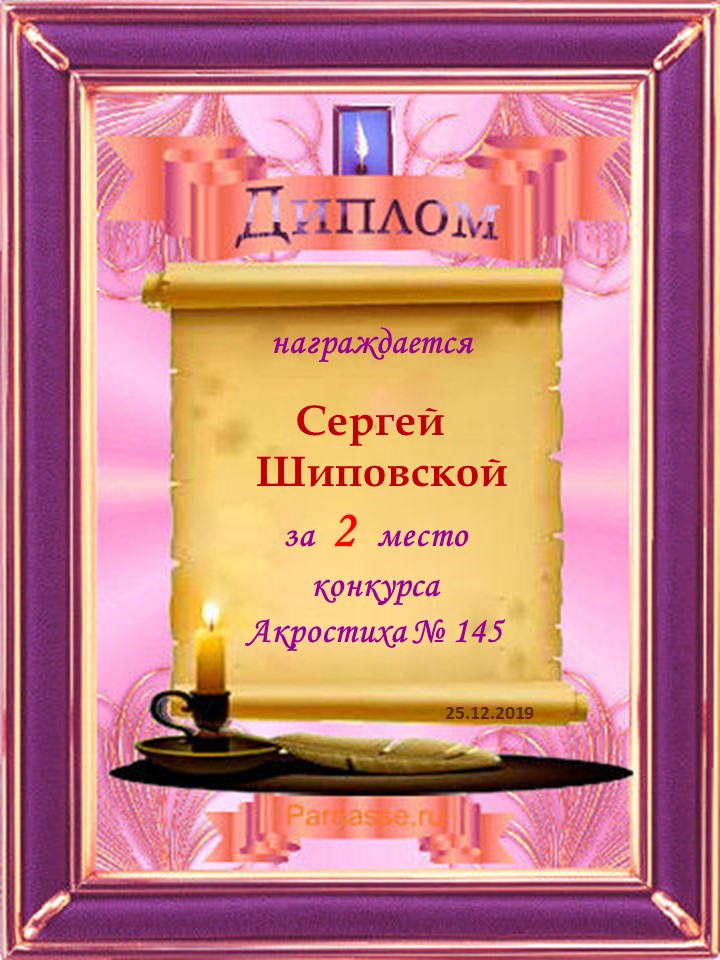 Диплом победителю в конкурсах Акростиха в связи с пятилетием конкурса Акростиха!