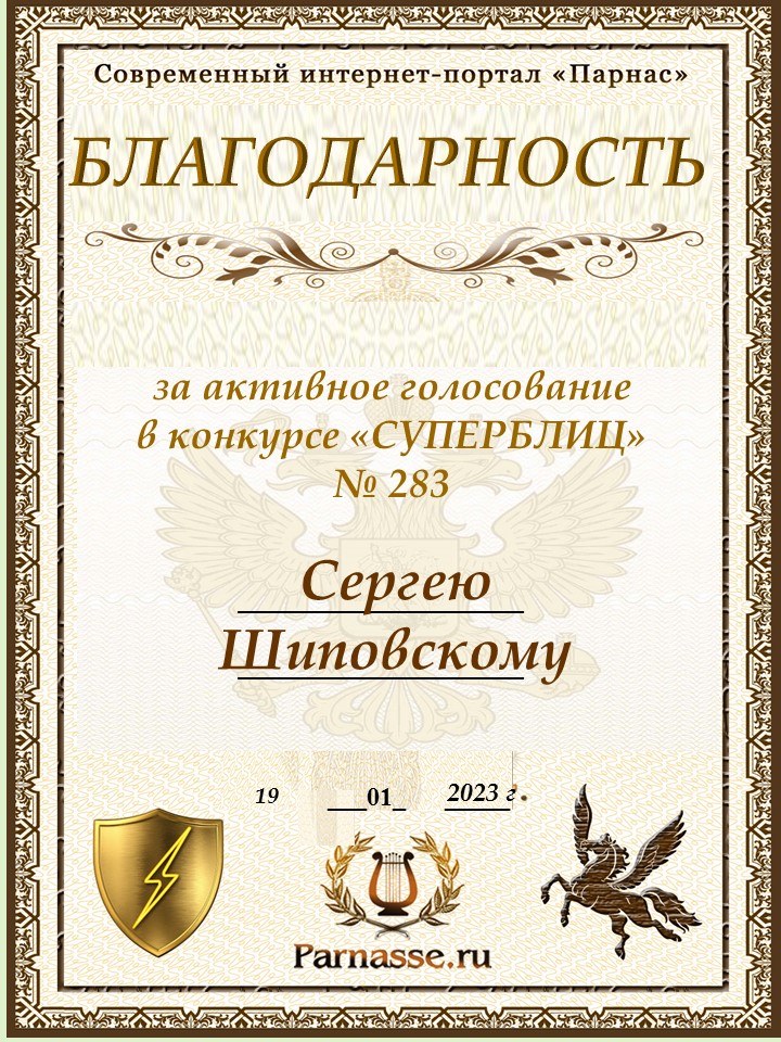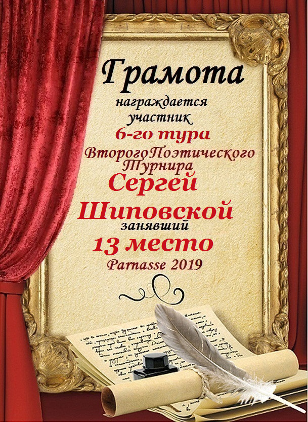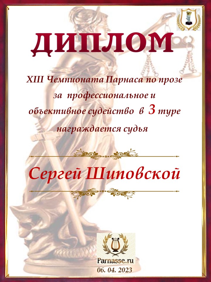 Спасибо за объективное и профессиональное судейство в 3 туре XII Чемпионата Парнаса по прозе!