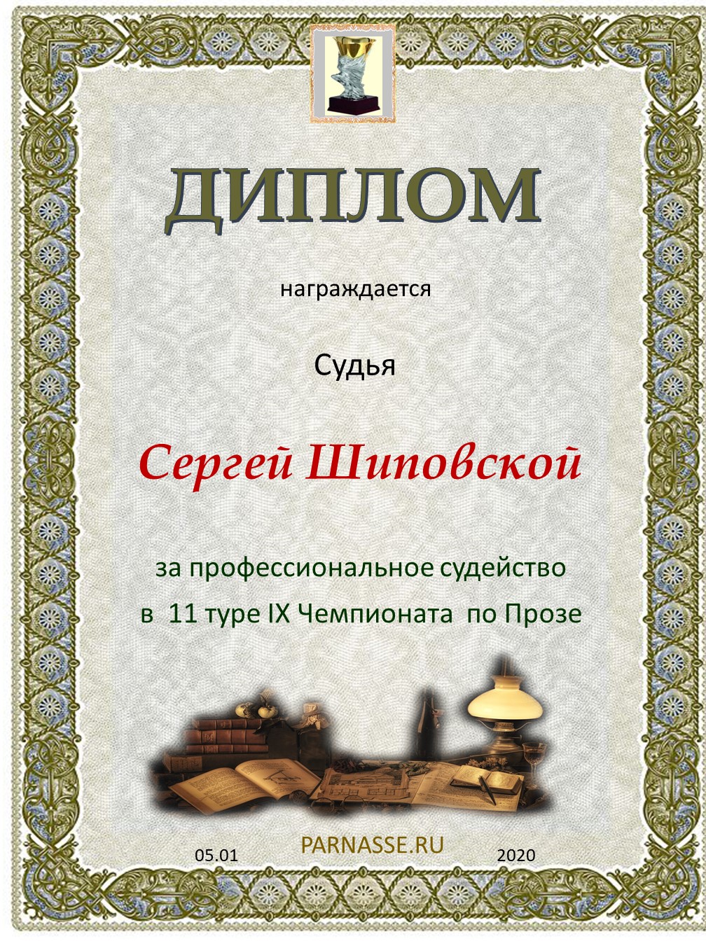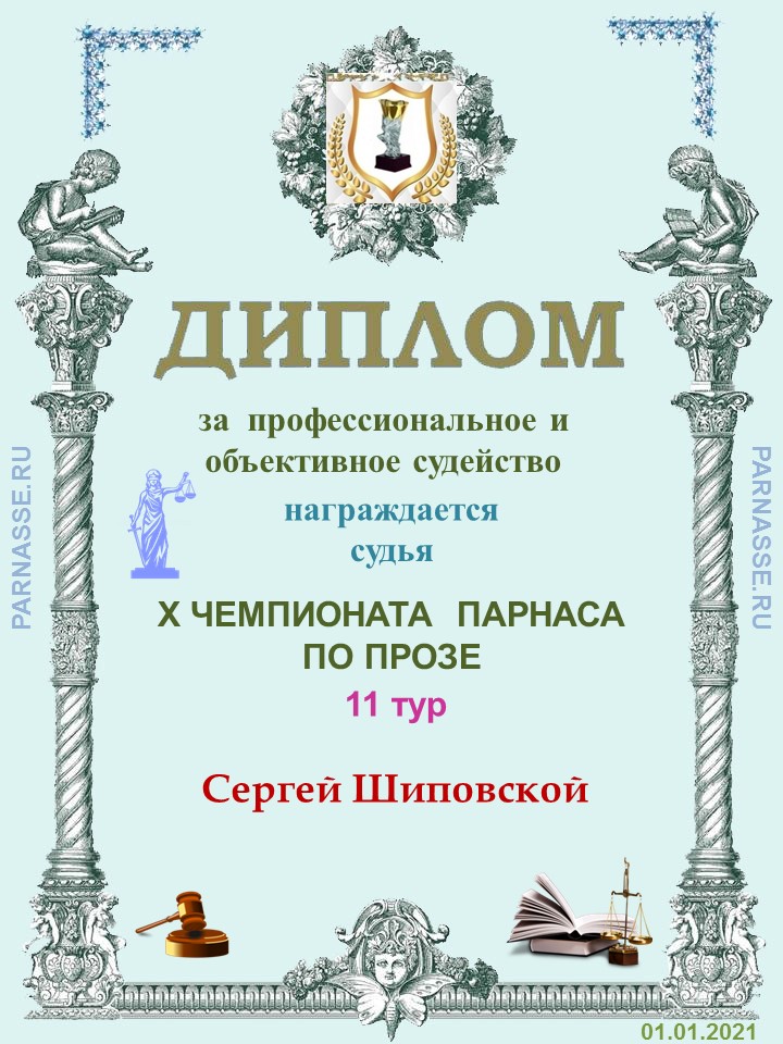 Спасибо за профессиональное и объективное судейство в 11 туре IX Чемпионата Парнаса по Прозе!